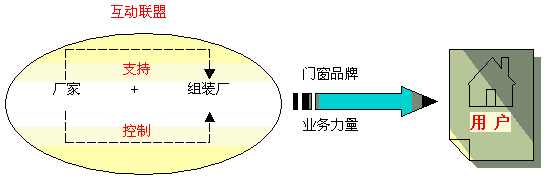 结论: 1)型材通路销售模式的重要因素是:组装厂和用户(工程和个人客户)。所以采用现今流行通路销售模式的同时,必须在相同的通路模式基础上做出系统性,做好细节,做牢关系,才能建立在通路上的竞争优势。 2)最终客户、组装厂等因素均在不断变化中,要解决客户工程订单问题,需从其关系的因素入手;要解决组装厂的加工及主动采用与推介使用问题,创新势在必行,以满足客户的购买习惯和多种需求为标准,建立高科型材在市场中的主动地位。 扬帆——高科塑业营销通路模式创新的第二阶段 时间:2002、6——2002、12 目的:培育和建立高科塑业的战略联盟体 行为:在对高科塑业的现有通路模式的分析、市场态势的考察以及通路的SWOT分析之后,青禾专家们认为:高科塑业的竞争战略可以分为三个层次。一是以大力开发工程用户为中心,在现有通路销售模式中通过加强工作的系统性,注重工作的细节,同时通过关系营销,提高销售人员综合素质,最终达到提升高科取得工程订单的数量和能力、推动型材销售的目的;二是进行通路销售模式创新,突破组装厂这一重要环节,推动型材销售。突破厂家与组装厂松散合作关系,形成联盟,共同发展,最终推动型材销售;三是实施信息化战略,对能够提供信息来源的所有部门加强信息的搜集和挖掘。 为了达到这一战略目标,同时又保持企业的通路系统的相对稳定性和一致性,高科塑业就必须积极培育自己的“互动联盟体”。所谓“互动联盟体”是指是由高科塑业与组装厂结成的互动联盟,共同开发最终用户市场,即塑钢门窗市场。它是由组装厂(安装队)、高科塑业及联盟体管理部、互动联盟运行关键要素以及加盟条件等四个部分构成。(参见下图) 互动联盟模式图:
