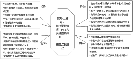 市场态势的考察: 1、越来越难于把握的市场。 “不是你不明白,是这市场变化太快”。如今企业所处的市场环境比以往任何时候都更难以把握。 转型中市场环境的特征反映在通路系统中就是充满了不确定性,如具有短期利益驱动特征的经销商、信誉与商业论理的缺乏、地方保护主义。 信息技术的发展加剧了环境的不确定性。随着互联网等信息技术的广泛应用,市场在空间上的边界被打破。同时,高科塑业所处的高技术行业,层出不穷的技术变革速度的加快,信息的爆炸性增长都促使各种环境要素之间的联系更加复杂,更加难以预测。同时,各地营销渠道的迅速同一化也加剧了不确定性的程度。 2、越来越难以抓摸的顾客。 随着市场经济的发展,买方市场的来临,那种供不应求时代以生产者为中心的时代也一去不复返了,取而代之的是消费者中心的回归。消费者成为生产经营活动的主导,消费者可以按照自己的需要和个性进行设计、采购和消费商品,企业必须按照消费者的需求特点来组织生产,因此,渠道通路的权利中心开始从渠道上游(制造商)向渠道的末端(零售商)转移。 高科塑业现行通路的SWOT分析: