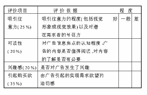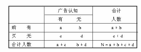 广告作为第三产业中一支重要的生力军,改革开放以来,在我国有了长足的发展。其作用已为社会各界所重视,但仍然存在这样或那样的问题,其中广告的盲目性较大,缺乏对广告效果的研究就是突出的一个。这里我们从三方面介绍广告效果测定与评价的一些方法,供企业界人士参考。 广告作为第三产业中一支重要的生力军,改革开放以来,在我国有了长足的发展。其作用已为社会各界所重视,但仍然存在这样或那样的问题,其中广告的盲目性较大,缺乏对广告效果的研究就是突出的一个。具体表现:一是广告宣传缺乏整体目标,呈现出一种随意性和盲目性,有的企业过分相信广告的促销作用,造成广告费缺乏理智的过度投入,影响企业整体经济效果的实现;二是强调提高知名度的同时,未将提高知名度与树立品牌形象结合起来,忽视消费者“心理市场”的建立,从而影响广告心理效果的实现;三是广告的社会效果有待进一步提高,不少广告内容虚假、夸张,不仅损害了消费者的利益,而且也影响广告本身社会效果的实现。殊不知言过其实的广告宣传不仅会使消费者产生不满,还可能激怒竞争者,为自己创造“敌人”。因此,在很大意义上,对广告效果的测定和评定,是我国当前广告业亟待重视和解决的问题。这里我们从三方面介绍广告效果测定与评价的一些方法,供企业界人士参考。 一、广告经济效果的测定与评价 从企业的角度看广告,广告目的可以用两个字来表述:获利。它既是企业获得长期最大利益的手段,也是短期提高商品销售额的途径。因此对广告的经济效果进行测定和评价,就是要对广告活动的促销效果和提高利润的程度进行测定和评价。这里我们介绍销售成果测定法和盈亏平衡点法。 方法一:销售成果测定法 在企业成本和价格不变的情况下,对广告提高利润的程度进行测定,又可以归结为对其促销效果的测定,本方法即是在对广告带来顾客人数增加的情况进行调查的基础上,设置指标进行计算,最后再根据计算结构进行分析、评价,具体有以下三个步骤: 第一步:进行市场调查。调查常用三种方法:电话询问、信函查询、人员走访。在调查中我们可以突出提出两个问题:是否看过(或听过)本公司的广告牽二是是否购买了本公司的产品牽根据问题回答情况可以将被调查人群划分为四大类:(1)看过或听过广告而购买了产品的;(2)看过或听过广告而未购买产品的;(3)没有看过或听过广告而购买了产品的;(4)没有看过或听过广告也没有购买产品的。可用表格形式表示如下: