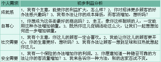 初步利益分析 有计划的业务拜访的四个阶段能够帮助你组织一次良好的推销活动,并提供适当的推销技巧帮你应对各种局面。以下就是推销技巧之一:“初步利益分析”。 初步利益分析:一段简短的事先准备好的话语,向经烟户阐明会带给他的利益。 初步利益分析指出如果经烟户购买了你的产品,会得到什么样的利益。这种分析通常用用于“接近经烟户”阶段,或其它各个阶段。如果这种分析的目的在于提高经烟户对你的关注程度,你就应该选择适当的利益分析。如果经烟户听完你的利益分析后说:“那又怎样?”你就未能引起他的注意。你的利益分析必须能激起他听下去的愿望。你应该使用不同的利益分析去应合经烟户个人的需要,下面是例举针对不同利益需要的利益分析。
