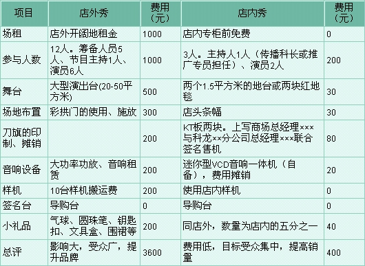 我们经常会看到许多厂家在商场外做大型的户外促销活动,我们自己也无数次这样做过。这种活动文人冠以一个好听的名字——“店外秀”,老百姓称之为“庙会”,搭台唱戏,热闹而已。不可否认这种活动在新品推介,品牌传播方面曾经起到了较大的作用。但是,你方唱罢我登场,店外秀从形式到内容的同质化,不仅让看热闹的老百姓乐不起来,其场地费、演出费的日益攀升,也让活动主办者打不起精神。为此,笔者2001年在科龙冰箱湖南分公司资源有限的情况下,成功地与东塘面货、友阿商场、泰阳商城、株州百货等商场举办了数场店内小型演出活动(简称“店内秀”),实现了“大型活动小型化,户外活动室内化”,取得了不菲的效果。今与大家共享。 ※调查发现 ·若问行人近日“店外秀”是哪个厂家主办的,相当多的人说不清楚。问他们有什么印象,回答看热闹的过了半数。 ·直接消费者在看了商场外的现场表演后,在购买的关键时刻还是走到了对手的专柜,并在那里产生了购买行为。 ·只要在同一地点举行两次以上的这类活动,你会发现很多积极“捧场”的都是你的老朋友——摸奖专业户。 ·店外秀的不足是简简单单的活动,复复杂杂的布置,大把大把的钞票。 ※我们认为 ·娱乐促销的目的是直接产生销售。娱乐促销不是贩卖娱乐。 ·大型活动可以做小,小活动不仅节约费用而且效果大。 ·店外活动可以搬到室内做,店内活动能吸引目标客户,摈弃广大“观众”。促销就是要把好钢用在刀刃上。 ※对比分析 今以容声冰箱签名售机活动为例,对比如下。