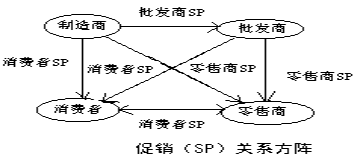 我们由促销的关系方阵可见,促销的类型可分为三种: ① 一级SP:制造商对批发商的促俏;制造商对零售商的促销;制造商对消费者的促销;批发商对零售商的促销;批发商对消费者的促销;零售商对消费者的促销。 一级SP的特点:单层次促销。 ② 二级SP:制造商对批发商对零售商的促销;制造商对零售商对消费者的促销;制造商对批发商对消费者的促销;批发商对零售商对消费者的促销。 二级SP的特点:双层次促销。 ③ 三级SP:制造商对批发商对零售商对消费者的促销。 三级SP的特点:三层次促销。 3、市场锋线的促销方式 促销方式如执行工具,是企业改造市场增进业绩的得力手段。经研究,这里提出九种销售促进(SP)的方式: ①无偿SP “无偿SP”指的是针对目标顾客不收取任何费用的一种促销手段。它包括两种形式: A、无偿附赠——以“酬谢包装”为主。 B、无偿试用——以“免费样品”为主。 所谓“酬谢包装”指的是以标准包装为衡量基础,但给消费者提供更多价值的一种包装形式。 酬谢包装,又包括四种形式: