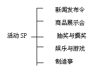 ①活动SP “活动SP”指的是通过举办与产品销售有关的活动,来达到吸引顾客注意与参与的促销手段。它包括五种形式: