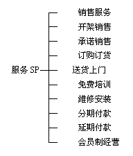 ·销售服务,即销售前的咨询与销售后的服务。售前咨询和售后服务都可以达到促销目的。 ·开架销售,即使用开放式货架,使顾客可以自由选择商品。开架销售可以激发顾客冲动性购买,并且一次购足。 ·承诺销售,即对顾客给予一种承诺,使顾客增加信任感,顾客就可以放心购买。如承诺无效退款,承诺销售三包,就可以降低顾客的风险意识,以达到促销目的。 ·订购订做,即专一地为顾客订购产品或订做产品。这种专项服务,可以使顾客产生上帝感和优越感,也能够体现出服务SP的宗旨。 ·送货上门,即将客户所购产品无偿地运送到指定地点,或者代办托运。送货上门,是服务SP基本的服务形式之一。 ·免费培训,即为客户免费教育产品知识与使用方法。免费培训一般是产品售出时附赠的服务项目。 ·维护安装,即为客户提供产品的安装调试服务及护养与修理。维护安装是SP的关键之举,也是客户的关心所在。组建定点维修网点,是执行维护安装服务的一种比较好的方法。 ·分期付款,即顾客对所购产品可以按规定时间分批分次的交付款项。运用分期付款促销,一般只在高价款产品销售时使用,此方法可以缓解顾客的经济状况,保持顾客持久地支付能力。如银行按揭,在楼宇销售中就有很大的促销作用。 ·延期付款,即顾客可以对所购产品在一定时间内交付款项。其与分期付款不同的是,延期付款一般只是一次性,在规定的时间里一次付清。延期付款可以暂时缓解顾客的经济状况,使顾客有充足的筹款时间。延期付款促销,可以吸引那些对产品有期待,但又一时缺乏支付能力的顾客。 ·会员制经营,即商品的经营者采用消费者入会,可以享受内部优惠待遇的促销方式。会员制一般列有明细的入会条款、受惠条款及需交纳一定的入会费用。会员享有购物权、消费权、保护权、服务权、折扣权等权力。会员制可以保留自己的基本顾客,使经营处于一种稳定状态。 ⑤组合SP “组合SP”指的是将两种以上促销方式配合起来使用,以求达到更有效率的促销手段。我们知道,在此之前的促销方式已有八种,其中每一种都可以与另外七种促销方式组合,这样,组合SP就可以达到四十九种形式。如无偿SP组合:
