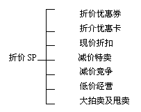 •折价优惠券,即通称优惠券,是一种古老而风行的促销方式。优惠券上一般印有产品的原价、折价比例、购买数量及有效时间。顾客可以凭券购买并获得实惠。 •折价优惠卡,即一种长期有效的优惠凭证。它一般由会员卡和消费卡两种形式存在,使发卡企业与目标顾客保持一种比较长久的消费关系。 •现价折扣,即在现行价格基础上打折销售。这是一种最常见且行之有效的促销手段。它可以让顾客现场获得看得见的利益并心满意足,同时销售者也会获得满意的目标利润。因为,现价折扣过程,一般是讨价还价的过程。通过讨价还价,可以达到双方基本满意的目标。 •减价特卖,即在一定时间内对产品降低价格,以特别的价格来销售。减价特卖的一个特点就是阶段性。一旦促销目的完成,即恢复到原来的价格水平。减价特卖促销,一般只在市场终端实行。但是,制造商一旦介入进来,就可能是一种长久的促销策略。减价特卖的形式通常有“包装减价标贴”、“货架减价标签”和“特卖通告”三种。 •减价竞争,即削减现行价格,让利于市场,并获得竞争优势的销售。减价竞争与现价折扣不同。现价折扣属于战术性促销,而减价竞争则一般是战略性促销,它从范围上,数量上,规模上、期效上都比现价折扣大。减价竞争可以说是一种以新的价格参与市场竞赛的战略。它是发动市场侵略性竞争的“杀手锏”。 •低价经营,即产品以低于市场通行价格水平来销售。低价经营属于一种销售战略,其整体价格水平在长期内均需低于其它经营者。而且,一开始,低价经营者就应以优惠的价格面市。从长远上看,低价经营虽是局部微利,但这一促销策略可以强力地吸引消费群,并达到整体丰利的目的。 •大拍卖及大甩卖,商品大拍卖是将商品以低拍的方式,以非正常的价格来销售;商品大甩卖也是以低于成本或非正常价格的方式来销售。大拍卖和大甩卖,都是一种价格利益驱动战术。对商家而言,大拍卖和大甩卖又是一种清仓策略。通过大拍卖或大甩卖,能够集中吸引消费群,刺激人们购买欲望,在短期内消化掉积压商品。 ④ 竞赛SP “竞赛SP”指的是利用人们的好胜和好奇心理,通过举办趣味性和智力性竞赛,吸引目标顾客参与的一种促销手段。它包括四种形式: