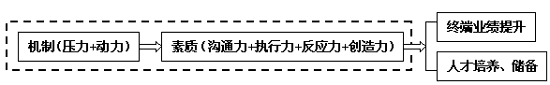市场营销本质上是一门“交换的艺术”,终端导购员的素质,是决定“交换的艺术”好坏也就是零售业绩的关键,同时,导购队伍也是将来成长为企业营销系统中营销骨干分子的重要来源之一。正所谓“不想当将军的士兵不是好士兵”。但是,作为高度市场化的家电行业,导购员的综合素质一直良莠不齐,企业亦缺乏对导购管理的总体思路与方向。那么,从行业的态势出发,从企业的人才战略出发,什么样的导购员才算是优秀的导购员?(或者说我们需要什么样的导购员?)如何通过有效的机制保障企业能蕴育、诞生优秀的导购员,从而在激烈的终端零售竞争中稳操胜券? 我们的结论是:保障导购队伍高素质的有效机制及优秀的导购员标准应是压力、动力、沟通力、反应力、执行力、创造力之“六力合一”,只有这样才能有终端的良好业绩以及为企业的人才战略培养、储备可用之材,其间的逻辑关系如下图所示: