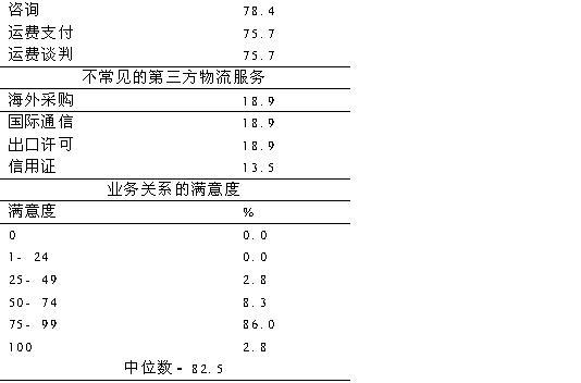 本研究对许多有关方都有一定的连带关系。契约物流提供者可以用该研究作为它们目前经营业务的参照标准。本结果提供了当今领先第三方物流提供者和它们顾客的资料。更为重要的是对影响成功的第三方物流关系决定因素进行了较深层次地分析。 第三方物流——也称外协或契约物流,在美国正处于快速发展中。而“现代”第三方物流只是80年代中期才在美国出现的。 许多因素促进了第三方物流的发展。最重要的因素是降低运输与管理成本的要求,其它因素包括改进顾客服务、集中主业、提高生产率及提高通信能力等。 什么是真正的“现代”第三方物流?遗憾的是,当前许多关于第三方物流的文章未能确切定义这一术语,只是假设读者对这一论题有一定的理解。例如:“第三方物流类似于外协或契约物流”,“一公司使用另一公司进行所有或部分物料管理或产品分销”等等。 “外协所有或部分公司的物流功能,相对于基本服务,契约物流服务提供复杂、多功能物流服务长期互益的关系为特征”。 基于本文的目的,采用最后一个定义,因为它强调90年代的契约物流与早期物流外协的区别,即全方位、长期互利关系。传统的外协只限于特定服务,即运输公司提供运输服务、仓储公司提供仓储服务。 通过对美国的调查发现:在许多公司现在使用第三方物流服务中,仓储与集散是最常见的第三方服务。降低物流成本是使用第三方物流的最一般的效果,美国的大部分大公司期望在不久的将来使用第三方物流。 Virum论述了第三方物流服务在欧洲的发展,并认为第三方物流尚无统一的定义,信息共享是第三方物流提供者与使用者之间的成功物流的关键。 Lieb,Virum和Rao等都主要从使用者角度讨论了当前第三方物流服务。而从第三方物流提供者角度的研究还非常少。由于第三方物流的明显特征是物流服务的使用者与提供者之间的长期与互利关系,因此,从后者的角度研究应更有意义。 研究方法与结果 本文是通过对领先的第三方物流提供者的调查得出的。先后分两批对51家第三方物流公司发出了调查函,之后收到37有效回函。这些函能够体现出第三方物流者的最新发展。 1.什么与“现代”第三方物流提供者的公司和经营的特征有关? 根据被调查公司反馈所要求回答有关公司的信息,可知其成立年份从1904年到1994年,中值年份为1986年。如表1,约2/3的契约物流提供者在1980年后,即在美国航空、公路、铁路自由化以后成立的。这些公司有一半以上是近十年才进入本行业的。从收入上看,第三方物流提供者公司年收入相差巨大,从100万到14亿,中位数为3500万。表1的数据显示半数以上的公司年收入5千万,但10%的公司年收入却起码是5亿。 被调查公司也要求提供它们计划以后10年的收入,所有公司都指出契约物流的收入将增加,估计增长率10%至999%,中位数42%,更有趣的是20%以上的公司认为今后三年增长率大于100%。 这些公司还提供了他们的雇员数。雇员从2人到8000人,中位数250人。表1的数据显示相对小和相对大的第三方物流提供者较多。近40%的公司雇员不到100人,而1/3的公司起码1000人。