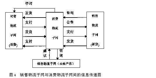 (2)销售物流子网与消费物流子网间的信息传递