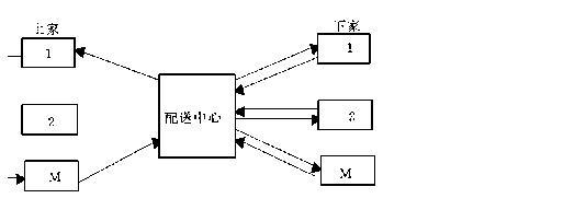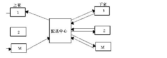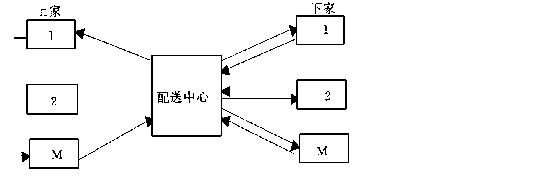 2.散货型配送模式:如图(2)所示,这种模式主要针对下家的供货物流进行优化而形成上家对配送中心的依存度小于下家,而且配送中心的下家相对集中或有利益共享特征(如连锁业)。采用此类配送模式的流通企业,其上家的竞争激烈,下家需求以多品种、小批量为主特征,适于原材料或半成品物资配送,如机电产品配送中心。