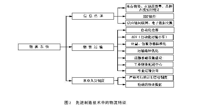 2 传统物流在先进制造技术中的局限性 在旧的生产模式中,原材料,外购件都是通过成批购进,降低产品成本主要是通过批量优势达到。随着用户需求的多样化发展,产品型号与规格日益增多。企业由通过采购成本的降低而更多的转向对于库存管理费用、场地占用费用、资金占用率、占用资金的机会成本的考虑,单纯依靠批量降低成本变得越来越困难。JIT方式推行理想库存为零库存的理念。由于库存量减少可以使在途资金减少,从而达到提高生产效率,降低产品成本的目的。 在这样的指导下,会存在一些与传统生产模式不相同的问题。 传统生产模式中,原材料,外购件都是通过成批购进,虽然造成在途资金的积累,但是它对于大批量少品种的生产的安全顺利进行,还是具有一定的积极作用的。避免了企业受外界环境不稳定的影响而造成企业停产,尤其是涉及到关键零部件的供应。大批量的购进,相当于企业已在自身内部建立起一定的安全库存以抵御外界的不稳定运行。 先进制造技术中,在低库存量、少在途资金、产品类型的多样性、顾客需求的多变性的情况,如何保证正常生产的进行,成了一个突出的问题。如何进行最佳存货级别的确定,如何进行最优补给政策的确定,是物流支撑在为了达到使企业对于市场需求快速作出响应而面临的一些基本问题。 先进制造技术中的物流技术要通过遍及组织(整个企业,或临时组成的虚拟公司等生产组织)的有效活动,以对市场需求作出及时的响应。经济指标上的代价最小作为衡量有效性的依据。在涉及到物流的具体运作形式上,传统生产模式中更加注重企业内部的物流运转与优化。在对于单一企业进行的自动化生产或实行先进制造技术的过程中,对于物流而言,更加注重的是企业内部的物流的改进与自动化,诸如工件的自动装卸,工件的自动化运输,自动化存储工作,物料的识别,控制,调度,物流系统设计与仿真。而对于全球性生产模式,全球性制造企业发展,对于广大范围内的物流必须进行研究与优化。 针对于先进制造技术,诸如Agile Manufacturing,如何使得动态企业联盟及时快速地获得关于产品的零配件信息,在规划,并行设计过程中及早地获得有关物流的数据,也是对物流系统提出的要求。而对于现在企业物流系统本身,也存在着分配系统与其它功能应用(包装/搬运/帐单,检测,MRPⅡ,ERP)缺乏集成的问题。 3 适应于先进制造技术的物流模式 作为制造技术的支撑,物流应该适合于先进制造技术作用的生产运作方式。功能活动是实现其机能的。为了使物流的活动能够适用于先进制造技术发展的需求,物流系统具有以下特征,如图2示:
