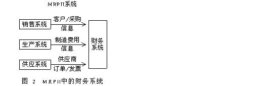 企业资金分为流动资金和固定资金.它们的周转方式和筹集方式各不相同.流动资金主要是垫支在劳动对象上的资金.它的价值一次全部地转移到完工的产品上去,产品销售以后,以取得的货币资金再用来购买新的劳动对象,继续投入生产过程.固定资金是用来购建主要劳动手段等方面的资金.劳动手段可以较长期地在若干生产过程中发生作用,逐步把它的价值转移到完工的产品上去,通过产品销售,逐步地取得价值的补偿,一直到劳动手段全部损耗而不能继续使用需要报废时,或者由于技术进步需要淘汰时,才进行实物更新. 2、2企业资金运动的过程 企业的资金运动沿着供应、生产、销售3个过程的顺序不断地循环周转,分别表现为资金的筹集、使用、消耗、收回和分配5个环节. 1)资金的筹集.企业根据国家规定,通过一定的渠道和方式筹集资金,这是资金运动的起点. 2)资金的使用.企业为了进行生产经营活动,要运用已经筹集的资金,购置各种生产资料,包括劳动手段和劳动对象,为企业的生产经营活动创造了物资条件. 3)资金的消耗.企业在生产过程中,劳动者使用劳动手段对劳动对象进行加工,生产社会需要的产品.在这一过程中,劳动者通过劳动除了将已消耗的劳动手段和劳动对象的价值转移到完工产品上去之外,还创造了新的价值. 4)资金的回收.企业在产品销售过程中,将生产出来的产品销售给购货单位,并按产品的价格通过一定的结算程序取得销售收入.价格是价值的货币表现.所以按产品价格收回销售收入,意味着实现了产品的全部价值,完成了从成品资金形态向货币资金形态的转化过程. 5)资金的分配.企业要把所取得的销售收入,按照国家的有关规定进行分配.首先是将一部分资金用于补偿生产中的资金耗费,重新购买劳动对象和支付职工的劳动报酬等,保证企业再生产过程的不断进行;另一部分资金则形成折旧基金,作为固定资产更新的准备金,其余部分就是企业的纯收入. 从上述分析可以看出,为了使企业正常运转,不仅要作好物料的供应、生产、销售计划,而且要作好资金的筹集、使用和回收计划.在MRPII系统中不仅要保证企业供、产、销中物流的平衡,而且必需实现资金收支中资金流的平衡. 3 系统的集成方法 要实现物流与资金流的集成,必须建立相应的管理方法与管理体系.物流管理和资金流管理在MRPII系统产生以前是独立的.物流管理经历了一般的库存控制系统、MRP、闭环MRP及MRPPII几个阶段.物流管理系统的发展史也就是MRPII系统的发展史.资金流的管理是通过财务管理系统来完成的.财务管理系统从分立系统如工资管理、现金管理、成本管理逐步发展为集现金管理、应收应付帐管理、总帐管理、成本管理等于一体的完整的财务系统.财务系统在同MRPII集成以前,所有相关数据是由人工采集,通过键盘录入.在物流管理系统向MRPII发展过程中,管理资金流的财务管理系统被集成到MRPII系统中,成为MRPII的一个子系统.财务管理系统从销售管理系统、生产系统、供应系统中直接提取资金信息,从而减少了数据的重复录入,更重要的是提高了财务管理系统数据来源的准确性,使资金信息迅速、准确地反映物流信息. 企业要正常运转,必须实现物流和资金流的均衡控制.MRPII系统中依据独立需求项目的需求信息及相关的工程数据,合理地安排了各物料的投放与生产的比例、数量及时间,从而实现了物流的闭环控制和均衡生产.MRPII系统中的资金流管理模块,如应收应付帐管理、总帐管理等,是对企业已发生的经济业务进行事后的记录和总结,是对过去生产经营活动进行客观的反映和监督.MRPII中的财务管理系统与其他系统的关系如图2所示.