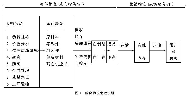 本文通过对物流在企业生产、营销、管理等方面影响的分析,说明在贸易全球化以及市场竞争日趋激烈的环境下,物流与现代科技、经营管理思想的充分结合,已成为企业赢得竞争优势的重要手段。 现代社会,随着科学技术的日新月异,越来越多的新思想、新方法运用于企业经营的战略规划和管理作业,增强了企业应变市场的能力。在所有改进企业经营管理的措施当中,现代物流技术合理高效地参与,正愈加成为企业赢得市场优势的重要手段。 1.物流的潜力得到社会和企业真正的承认 (1)生产技术、信息技术的进步为有效的物流运作创造了条件。柔性制造系统(FMS)、及时制(JIT)、自动化仓库、销售时点系统(POS)、EDI等在生产、流通领域的普及,使企业能够把其应用在订单处理、库存控制、仓储运输这些日常经营活动上,提高了物流管理的效率以及供应链成员之间的沟通,增加了原材料到成品直至最终顾客的整条通道的可见度,保证货畅其流的实现。 (2)对于大多数企业来说,物流成为经营的一项关键性成本因素;物流决策及管理水平的高低,对成本的影响越发明显。特别是当今的市场,企业的经营视角已不再局限于某个地区,而转向全球贸易,原材料与零部件的筹供、产品的分销以及设施选址问题都需要企业审时度势,一些细微的差错就可能导致无法挽回的损失。许多成功与失败的经验让企业懂得,把物流作为一种负担或回避物流决非明智之举。 (3)从市场竞争、市场细分、全球消费市场多样化和产品生命周期缩短的现实考虑,制造商在开发新产品的态度上更为积极,分销商面对的是比过去多得多的产品类别,消费者也需在众多品牌中做出选择。不同的地区、销售渠道和消费对象,对物流与供应链系统的设计都有着不同的要求。这些确实向物流提出了严峻的挑战。 (4)没有哪家企业不知道“顾客就是上帝”这句营销法则的。所以,企业在制定营销战略时也将顾客满意作为追求的目标;要实现此目标,需对多变的市场有着敏锐的反应能力,并做到整个供应链的联动,在适当的时间、适当的地点提供给顾客适当的产品。企业通过实践发现,有效的物流在减少成本、改善服务、吸引并保持顾客方面的作用功不可没。 2.物流对企业经营成本的影响 管理专家彼得、德鲁克曾经称物流为“经营上的黑暗大陆”,这不仅指产品在向消费者的转移过程中缺乏足够的可见性,而且市场经营者在分析规划其营销战略时,也往往疏忽了物流。以前,产品向顾客的移动被分割成一系列独立的活动进行管理,很少会想到把它们整合为一个系统,对原材料与零部件采购、库存控制、生产加工、储存运输直到最终顾客的整个实物流动过程,采取综合物流管理方法(见图1)。现在,无论生产企业还是流通企业,都同样面临着通过物流管理的一体化,对影响成本的要素加以权衡,来降低供应链的总成本,并满足顾客对服务的需要。