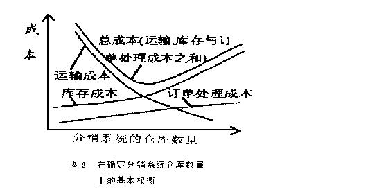 由于现代物流的概念涵括了企业经营的全过程:需求预测、选址、采购、生产进度、运输、装卸搬运、库存控制、仓储、包装、配送、订单处理、客户服务、返还品管理、废弃物处理以及其它辅助活动。不少企业在降低这些局部成本的工作中,获得了不同程度的效果。但一些世界级企业的实践证明,整体观的物流能给企业带来实质性的成本节约。 过去,企业的经营管理虽然有一套总体目标,但每个部门往往仅围绕自己的职责相应开展,并力求减少费用支出,却无法从供应链中去跟踪成本的产生,所以经常使得经营活动的持续性差,甚至造成职能部门的冲突。另外,在企业的营销管理活动中,伴随着物流系统的支持,也产生了诸多不同选择的物流成本要素权衡问题。一个营销物流系统包含运输、仓储、库存等成本要素,通常它们直接与顾客服务水平及顾客满意程度息息相关而彼此利益相背,如何平衡这些竞争性成本要素是对管理的挑战,由此引伸出物流总成本的概念。简单说来,物流总成本是指通过实现所有个别的成本要素之间的最佳平衡,达到降低整个物流成本的目标。 例如由图2所示,就清楚地说明了企业在进行一项经营决策时要面对的物流成本的抉择。当仓库数量增加时,运输成本下降而库存与订单处理成本上升。在这种情况下,从物流观点考虑,最终应做到总的分销成本下降。要达到总成本最低的目标不是一件容易事,有时在某项功能上的最优设计却招致其它功能的损害,我们可能会遇到: