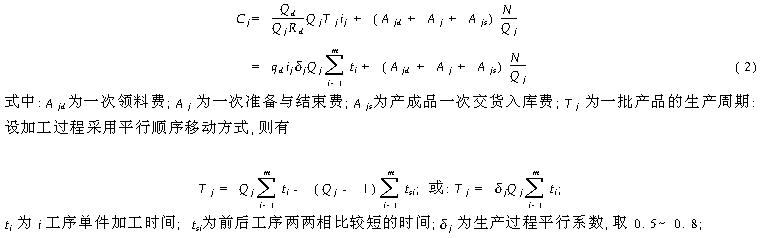 3、2生产环节批量与费用分析 在成批生产系统中,物料成批投产,产成品成批入库,生产过程在制品占用见图1.设生产环节批量费用为 Cj,包括 :准备与结束费、在制品占用与保管费、物料领用费、产成品交库费等 ,把各项费用相加得生产环节批量年费用算式 (2 )