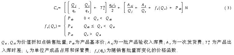 3、 3 销售环节批量与费用关系分析 销售批量是指批发商或零售商一次购买及提货的产成品数量 (销售批量对生产系统物料占用量的影响见图 1 ).设销售批量年费用为 Cs,则 Cs包括 :产成品入库费、库存保管及占用费、发货费、价格折扣等 .考虑各费用因素 ,可得销售阶段批量费用算式 (3 ):
