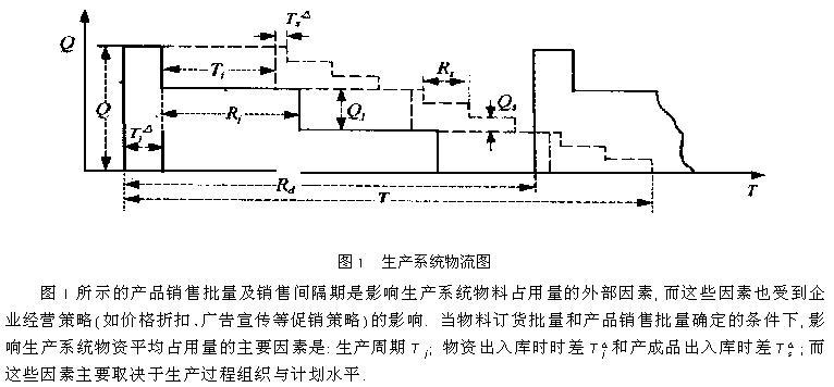 以企业生产系统整体为对象,分析了离散型生产系统物流占用量变化特点,以生产系统整体效益最大化为目标,建立了价格折扣条件下的经济订货批量、经济生产批量、最优销售价格折扣率的新算法,为生产系统物流批量优化提供了新的依据。 1、引言 工业企业的生产经营活动需要消耗大量的原材料、零配件、辅助材料等物资,如何在保证生产过程正常需要的前提下,使物流成本最低,是企业生产系统优化的一项重要内容.在离散型生产系统中,物资订货批量、产品生产批量和销售批量的大小是影响企业经济效益的重要因素.传统的批量优化方法是把物资采购环节、产品生产环节及其销售环节割裂开来考虑,忽略了生产经营过程各个环节之间的关系对批量的影响;同时在确定经济批量时,常假设生产过程物资消耗以及市场需求是连续的(而实际需求往往是批量型的),这种假设使传统算法确定的经济批量与整体优化要求存在一定的差距.从系统角度分析,企业从生产物资的采购入库起,经一系列加工制造过程,在产成品销售出去前,物资只是在生产系统中发生了形态和价值上的变化,而在空间位置上仍处于企业生产系统不同环节中,物资占用总量并未由库存状态转为生产状态、或从生产状态转为待销状态而发生实质性的变化,只有在产品销售出去后,物资占用量才发生改变.因而有必要从生产系统整体综合分析物流变化,以确定最优批量. 2、生产系统物料占用分析 由于物资供需双方在时间、空间、数量需求等方面存在着一定的差异,为保证生产过程的正常进行,需方企业必须保持一定数量的物资库存量;为节省采购和运输成本,则必须成批地采购和运输.在成批生产条件下,生产过程各环节成批领料和生产;企业面向中间商(批发商)成批地销售产品.从企业生产系统整体考虑,各环节间物流是互相衔接的,物资从进入企业始,在生产系统中处于加工、检验、运输、等待、储存等占用状态;由于各环节具有不同的技术和经济特点,在生产实践中,为便于生产过程的计划和组织,前后环节间批量一般成整数比关系.设物资采购量为Qd、产品生产批量为Qj和产成品销售批量为Qs,环节间批量比k=3,物料出入库在瞬间完成,把各环节物料变化叠加在同一图上,则可得到生产系统整体物料占用图1.