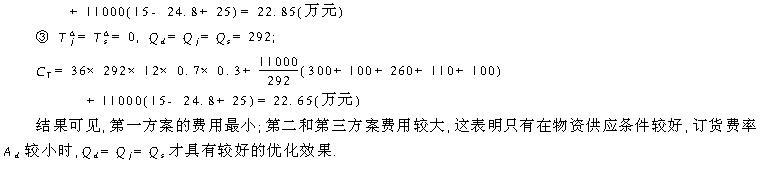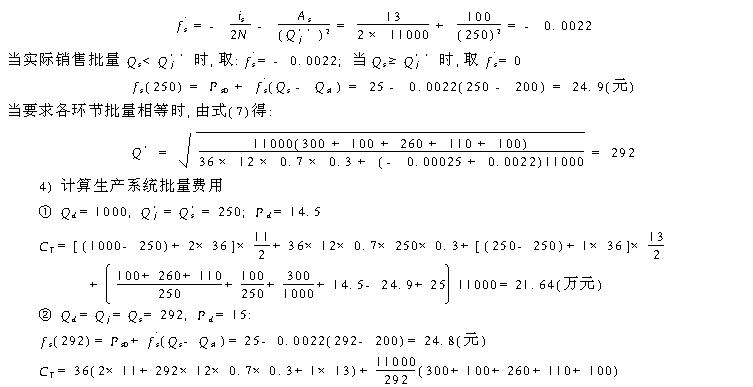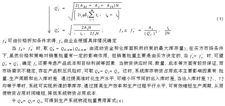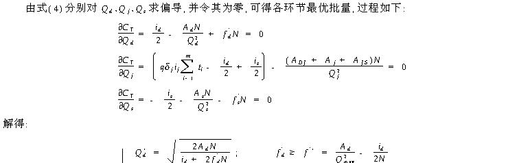4、生产系统物流批量优化 由式 (4)分别对 Qd、Qj、Qs求偏导 ,并令其为零 ,可得各环节最优批量 ,过程如下: