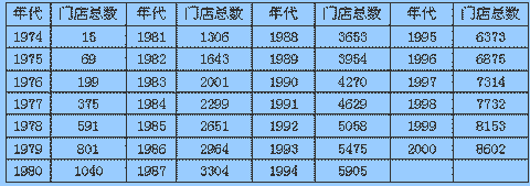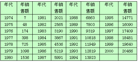 世界著名的连锁零售企业日本7-11公司的迅速发展,使全球的零售企业都不得不对其另眼相看。截止到2000年12月31日,7-11在全世界已经拥有21142家门店,遍布19个国家和地区,仅在日本本土,至今年4月30日已经有8641家门店。 诚然,如今的日本7-11曾经只是美国7-11的海外连锁加盟公司,是美国7-11国际化发展的产物。然而,如今的7-11为什么又是由日本公司“当家作主”呢? 美国便利店的起源始于20世纪20年代,前身是一家名为“南大陆制冰公司”的冰块销售门店,后来为降低管理成本,扩大门店的经营范围,便产生了7-11的雏形。1946年1月24日,南大陆公司正式成立7-11便利店。到20世纪60年代,黑咖啡,三明治,热炸面包等方便食品进入千家万户,便利店也随之迅速地成为零售业中一个独立,颇具效率的业态。7-11也在此时得到了快速的发展,先后购并了数十家公司,迅速的成为全美第一大便利店公司。 就当60,70年代美国7-11大举进军欧洲和加拿大市场的时候,日本也迎来了大众消费的时代。此时的日本,生产所对应的消费开始变得越来越活跃,商品的销售,流通都需要做出重大的调整。除了原来的百货店和独立的零售商外,大型的超市开始成为零售业中的生力军。很多超市纷纷派人到被视为经济楷模的美国参观考察。其中就有日本7-11的母公司,著名的超市——伊藤洋华堂,他们试图选择一种不依靠大规模进货,大量销售的为竞争手段,而是通过商品销售规划管理来寻求发展的零售模式。1973年11月30日伊藤洋华堂经过多番的努力,终于和美国签订了在日本开展便民特许经营的《地域服务于特许契约》。次年5月,日本7-11的第一家门店在东京开业。从此,日本的7-11便进入了高速成长期,当年就开设了15家门店。 图例:日本7-11的各年销售情况 单位:亿日元