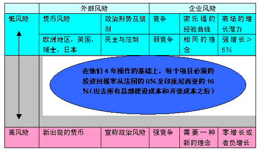 感触——2003世界零售行业 看了上面5个大型零售企业集团的2003年的表现,我们可以有以下一些感觉: 合理计算你的现金流 从7-Eleven的报告我们可以看到,在未来的2004年,公司准备支出大约在3.45亿美元至3.75 亿美元,用来支持全年在美国和加拿大开发100家门店,这个支出比例相当于年销售收入4%左右。 而从上述的五大零售集团的销售报告可以看到,其每年的销售增长的主要动力还是在于依靠资本性的支出开发新的门店,门店销售同比增长能力相对较小。资本性支出的花费决定了来年的集团销售增长情况和未来的发展,如何动用发展和内部采购商品以及其他相关资金流的比例,将是中国的零售企业每年需要考虑的,这也是避免资金链断裂的关键。门店拓展的方向和数量以及内部业务流程优化推动一个零售企业不断的发展,但是你要小心的计算手中的现金流和固定资产,因为零售企业面对的环境是多变的,现金流的断裂代表着企业发展车轮的停滞与失败。 本土化与门店扩张 对于上面我们所看到每一个零售企业来说:开拓新的市场是每一个企业都需要面对的问题,从阿霍德到家乐福,门店的涉及国家都达到了20~30多个国家,遍及世界除去南极洲之外的六个大洲,但是其每一个零售集团的成功都是牢牢根植于自己所诞生国度,立足于自己的发源地进行不断的扩张,每一个扩张实际都是一次在异地本土化的净化和磨练。 每一次扩张都具有一定的风险,家乐福对于自己的门店扩张的提出了三个前提: ·商业模式:包括商品品类构成,折扣政策,观念的革新。 ·投资模式:包括两个方面,一方面是优化国内标准,例如:销售额/固定资产投资,流动资金,固定资产投资/平方米,另一个方面是要保证投资回报率的完成目标。 ·财务模式:采用完全所有产权或者租赁模式进行经营。 同时,家乐福有严格的固定资产投资分配方案:它是建立在下面的两项数据的基础上的,即集团的股份权益成本+某国附加风险金,另外一个是成本与集团内债务和所有者权益的百分比(杠杆作用) 国家附加风险金主要反映在下面五个方面(详见图表):这5项风险分为外部风险和企业内部风险。外部风险包括货币风险和政治形式及规则方面,此次发生的拉美地区货币汇率变动就是属于货币风险。企业的内部经营风险包括竞争情况,家乐福的经验情况,商场的上升增长潜力。 即使有这样的举动,家乐福在去年的扩张之路走得也不是很顺利,尤其是在便利店和折扣店的调整上。由此可以看到,在一个未知的新的经营业态和领域面前,必须要有自己的有效评估和预测,这不仅仅是靠电脑中的各项数据,还要翻翻自己大脑中多年的管理经验。