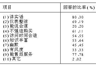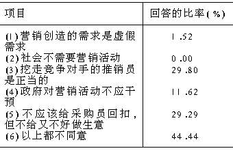 为了帮助企业认清消费者对营销的道德要求,进而为制定正确的营销决策提供服务,笔者进行了一次关于营销道德的问卷调研。本文记载了他们的调研结果。 企业,为了生存和发展,认识到必须开展营销活动,是解放思想的表现;而能认识到消费者对营销的道德要求,自觉地规范自己的行为,树立良好形象,是有眼光和成熟的体现,特别是在假冒伪劣商品盛行的今天更是如此。为了帮助企业认清消费者对营销的道德要求,进而为制定正确的营销决策提供服务,我们进行了一次关于营销道德的问卷调研。 一、调查统计数 据我们这次问卷调研涉及的内容有营销观念、产品、定价、销售渠道及促销等方面。调查范围涉及河南的17个地市,其中具有农村背景和城市背景的各占一半,样本的职业涉及面很广,几乎是各行各业,甚至无业的消费者,样本的年龄在18~55岁之间,其中大部分(95%)在20~35岁之间,样本的文化程度选择在高中毕业及其以上。 各种问题回答的统计结果如下。 7.企业若派员向您作市场调查时,您对调查者的要求是: 8.您对产品的要求是: 9.您最讨厌企业定价中的项目 10.您对批发店和零售店的看法是: 11.某企业决定拿出巨款在贫困地区建立希望小学,并撰写新闻稿在报纸上广泛宣传。您对该企业最主要的要求是: 12.您对推销员的要求: 13.您对企业开展有奖销售的要求是: 14.您同意下列哪些说法? 14.您同意下列哪些说法? 二、调查结论 对以上调查统计结果分析,可得到以下结论: 1.消费者对目前企业开展的营销活动持充分肯定态度,但对企业是否真正树立市场观念表示怀疑。如认为社会是需要营销活动的占100%;认为中间商是社会所需要的92.4%,但又提出对他们进行严格管理;认为营销活动创造的需求并非虚假需求的占98.48%;认为“大多数广告是必要的,是选购商品的可靠来源”者达63.64%,说明广告这种促销方式已为多数消费者所接受。同时不少消费者对企业是否真正树立市场营销观念表示怀疑,因为几乎三分之二(65.15%)的消费者对于“大多数企业要求消费者购物时自行当心”这种说法表示同意或不确定,这和美国76年调研的结论相吻合。那里对相同问题的回答,同意及不确定的占57.00%。 2.消费者对营销者的道德要求最重要的是对消费者诚实、尊重、讲信誉、动机纯洁。如消费者对企业派员向消费者作市场调查时,对调查者要求“讲实情”者达81.31%;将企业定价中的“欺骗行为”列为最讨厌者达77.27%,对“不明码标价行为”列为最讨厌者达48.48%;对企业公关中的“捐款活动是真实的”要求占59.60%;对企业开展有奖销售活动,要求“不能有欺骗和不公正行为”者占88.89%;消费者要求在向他们调研时,“不要询问生活习惯”的占14.14%,“不要询问个人收入”的占21.72%;要求推销员“不强迫购买”者达61.11%。但当期企业的营销道德距消费者的要求还相差甚远,对营销动机还持怀疑态度,如对“大多数广告是可信的”完全同意及同意者只有27.79%。这对企业整体的营销形象是不利的。 3.价格问题仍是消费者最关心的问题之一,消费者要求企业定价公平合理。如将“暴利行为列为最讨厌的定价行为”者达59.09%,对“价格歧视行为”列为最讨厌者达17.68%,对“价格折扣行为”列为最讨厌者达13.64%。因此,企业营销者对价格问题有必要作进一步反思,以适应消费者的要求。 4.消费者要求不受到物质和精神的伤害,不破坏正常的生活,有利于自己的身心健康。如要求调查者“不要谈及不愉快的话题”回答者达27.27%;要求产品“绝对安全”者达62.63%;调查前要求“提前打招呼”者占21.21%;要求推销员“访问时间合适”者占54.55%;要求产品“有个性”的占34.34%;对有奖销售中,要求“头等奖不要太高,但中奖面要宽”占31.31%,而要求“奖金要有足够的吸引力,即使中奖率较低也行”者只有10.10%。这说明,消费者对营销者的道德要求是多方面的和长期的。 5.对中间商的评价较低。认为中间商是造成价格提高较多的主要原因,对此完全同意及同意者达48.48%,完全同意“物价就是由它们抬起来的”占11.62%,但认为中间商“大多数是多余的”仅占2.53%,认为中间商“大部分是奸商”者达11.11%。这说明绝大多数消费者认为中间商是需要的,但确实需要加强自己的营销道德修养,以便使大众认同自己的形象。 6.消费者环境意识提高,责任感较强,但具体问题上又可能出现道德冲突。如要求产品不污染环境的占45.45%,但当消费在购物时,想法可能又有所不同,如当问及“电冰箱的使用会破坏臭氧层,但这并不影响我对电冰箱的购买。”完全同意及同意者为54.55%,不同意及完全不同意者为26.77%。这和美国76年的调查结果惊人的一致。那里对“对环境的关注并不影响大多数消费者对产品的选择”,同意及完全同意者达68%,不同意及完全不同意者只占17%。这表明消费者和公民角色的道德冲突十分明显。 三、几点建议 根据以上调研统计结果,我们认为企业营销者应在以下几个方面采取行动或措施: 1.企业营销者的营销活动要充分考虑到消费者对自己的营销道德要求,真正树立市场观念。即以顾客为中心,以维护消费者的利益为宗旨,诚实、公平地对待消费者,做到互相尊重、互惠互利、共同发展。而要实现这些目标,企业需要结合企业形象设计,建立良好的企业理念及企业文化,从制度上、文化上保证贯彻正确的营销道德。 2.中间商