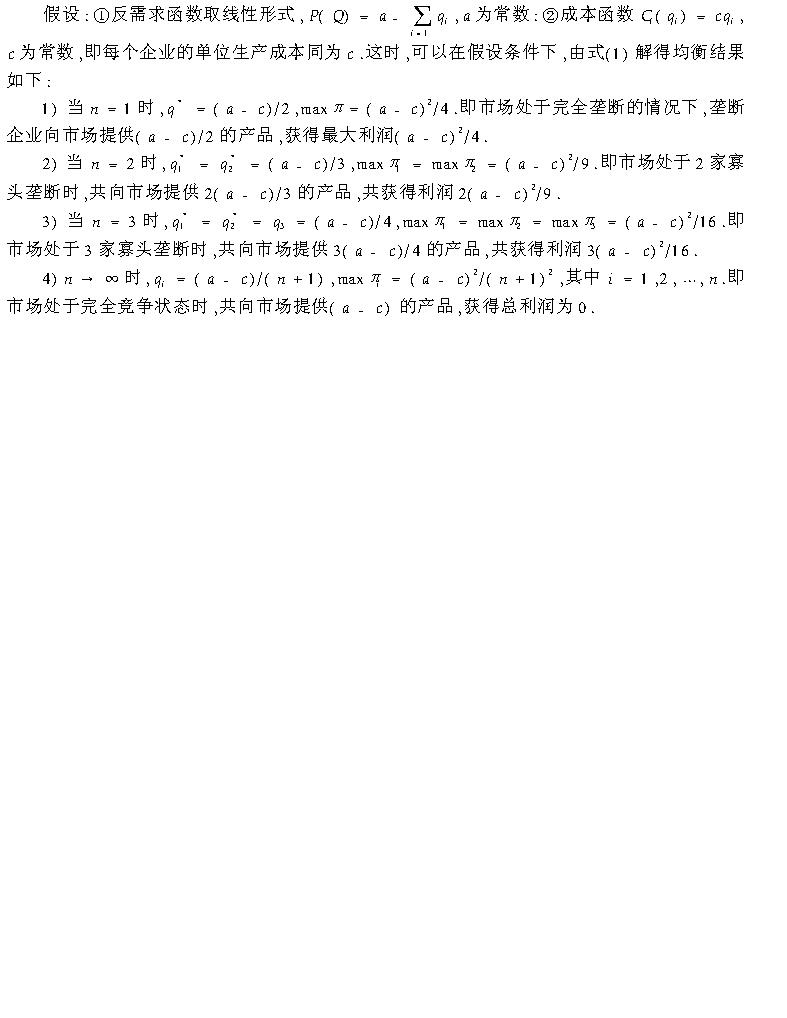 ,a为常数:②成本函数ci(qi)= ciqi,ci≠ci,当i≠j时,即企业之间的单位生产成本不同.为讨论简便起见,不失一般性,取n=2,解得均衡结果
