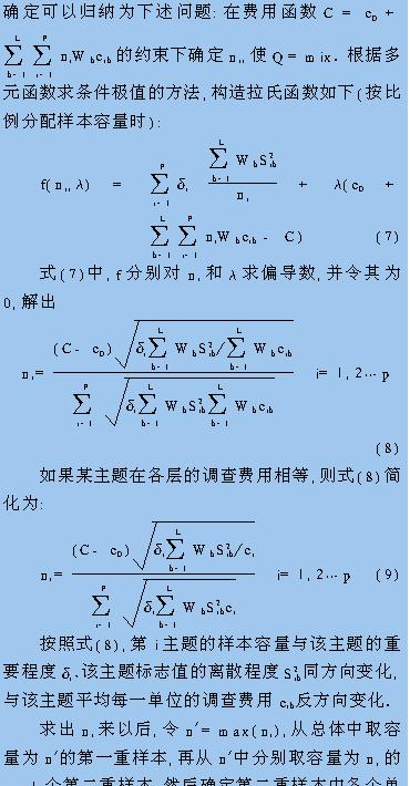 在双重多主题抽样中,如果调查主题较多,对每一个主题都计算样本容量并抽取样本,不仅事先需要掌握大量资料,而且工作量也很大。为了解决这个问题,可以事先对调查主题进行分类,在此基础上,将调查主题进行合并。分类的原则是,把具有较高线性相关的主题分在一类,把线性相关较弱的主题分在不同的类别中。从每一类别中选取一个主题,作为该类的代表主题,根据这个主题计算一个样本容量并进行抽样,用这个样本调查所有属于这一类的主题。由于具有较高线性相关的主题在估计精度相同的条件下所需样本容量相差不大,因此,通过合并主题,在不影响各主题估计精度的前提下,可以减少抽取样本的工作量。在批零贸易业、餐饮业抽样调查中,可以将调查目标合并为三类,即购进额作为一类,销售额作为一类,库存额作为一类。 在多主题抽样估计中,难免有个别主题的离散程度比其它主题大的多。从费用的角度考虑,对于这类特殊主题应做特殊处理。处理的方法有两种,一是降低该主题的估计精度要求,使得它所需要的样本容量适当的减少,在此基础上,进行双重抽样;二是将该主题从多主题抽样中剔除出来,针对该主题的特点,对它采取另外的抽样方法。 5.关于总体单位和样本单位的变动问题。如前所述,一方面,由于小型批零贸易业、餐饮业经济实力较薄弱,在市场竞争中随时都有被淘汰而终止营业的可能;另一方面,由于小型批零贸易业、餐饮业需要的投资较少,对技术要求不高,容易进入。这两方面的特点决定了小型批零贸易业、餐饮业企业的总体单位和样本单位的稳定性很差,从而造成抽样框和样本单位经常变化,对抽样估计的精度造成不利影响。为了解决这个问题,需要经常更新抽样框,并采取轮换样本的方法。 [注释:①双重抽样有四个方面的基本用途:(1)用于未知总体各单位在分层标志上的标志表现时的分层抽样;(2)用于未知总体辅助变量总体均值时的比率和回归估计;(3)由于估计调查误差;(4)用于估计不同的目标量,以节约调查费用。对于不同的用途,双重抽样中两重样本的作用各不相同。这里仅讨论双重抽样第四个方面的用途。] 统计研究 赵俊康 |