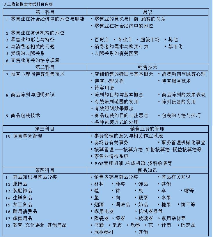 本销售士制度是由社团法人日本销售士协会、日本商式会议所、全国商工会联合会共同推动的一种“销售士”资格认证制度。本文介绍了这种制度,并重点介绍了日本销售士考试的科目内容 企业发展的关键在于人才,流通业的人才与其它产业相比更为匮乏,科技含量相对其它行业也较低。从建国到80年代零售业的发展以国有商业为主体,中上层管理人才几十年一贯制,虽说这批人才很可贵,但一则人数很少;二则未进行过正规培训;三是大多管理的是百货业态,对其他业态的管理经验并不丰富。人员素质相对其他行业低,是历史形成的原因。 90年代以来零售业迅猛发展,大型零售店和连锁商业的发展尤为突出,所有制结构、业态种类与90年代以前相比发生了巨大变化。国有商业的比重下降,一般只占50%左右,有的城市只占30%。在北京,80年代的大型店主要是王府井、西单、东风市场、隆福大厦,后起之秀有长安、城乡,而到了1996年,北京的大型零售店就发展到54家,到本世纪末,将超过百家,其它大中城市的情况也大体相当。中小型零售店,尤其是小型店,主要以个体经营为主,其发展速度在80年代达到高峰,但面对大型零售业和大规模企业牗连锁企业牘的竞争,在规模和经营管理都不理想的情况下,有可能出现更频繁地更换业态或倒闭。在这种竞争激烈的时候,零售业除了力求商品、设施、战略的改进外,提高销售服务的质量将是赢得胜利的重要之举,而人才又是其中最关键的一环。 零售业的过快增长问题,形成人才供需的严重失衡,而对于零售业来说,又是以人的服务为中心的产业。因此,从业人员的素质与服务质量的高低,就成为本行业发展的关键。日本的零售业在70年代也面临快速增长,面对这种局面,日本商工会议与全国商工会联合会,在日本通产省、中小企业厅的支持下,为落实中小零售商场振兴法,在1973年实施销售士的考试,考试合格者授予“销售士”资格。 日本销售士制度是由社团法人日本销售士协会、日本商式会议所、全国商工会联合会共同推动,每年除有各种检查考试外,还举办销售士培训课程、销售士讲师论文评选活动,通过这些活动,不断引进新观念和新教材,推广经营管理与销售的新理论、新技术。 日本销售士的资格认定有三个等级,每个等级的标准不一样。比如:三级销售士强调待客的基础知识与商品的专门知识;二级销售士除了强调这些有关的知识外,还要加强商场与店铺管理能力;一级销售士除了具备这些知识外,对于流通业的市场动态和企业经营的专业素质,亦应有更深的了解。一般而言,三级销售士适合的对象为:零售业一般销售人员、小型店店长。二级销售士适合的对象为∶零售业牗含连锁店牘中级主管、中型店店长。一级销售士适合的对象为:零售业经营者、大型店店长、连锁店高级主管。检查合格的比例,依日本过去几年的统计,三级销售士合格率约为45-50%左右;二级销售士合格率为35%左右;一级销售士合格率为9%-12%左右。 日本销售士制度实施以来,全国取得资格的人员包括一级到三级约有二十几万人,受到零售业人士的重视,经实际调查显示:流通业界对此制度具有极高的评价,对于取得该项资格的人员,在人事考核、升级、加薪等方面,成为相当重要的参考依据,尤其是新进人员任用,更是行业内参考的资料。实施至今,在行业内扮演着非常重要的角色。 日本销售士考试科目内容: 我国目前流通领域尤其是零售业界管理人才奇缺的情况,导致了零售业经营混乱,管理水平普遍低下的状况,严重阻碍了零售企业向现代化企业发展的进程。目前虽然很多新建的大型零售商场很注重引进人才,但由于我国并未有任何学校或教育制度能使其经过一定的培育后直接担任中高级企业管理职务。很多有高学历的管理者,对流通业和零售业不熟悉,仍导致了企业的经营管理不善。而借鉴日本培养销售人才的经验,对我国流通业的发展将有着积极的作用。对全社会零售业经理级人才的培养,将提高整个零售业从业人员的整体水平,并且能有效地控制企业的从业人员,从根本上推动了零售企业向科学、现代化水平发展。 对于中国零售业而言,已由高速成长期逐步向低速成长期和成熟期转变。加强商品以外有关管理与服务的附加值将成为企业发展的必备条件。因此人的因素与管理质量的提高,自然更将得到零售业界的重视。在我国相应推行这一制度,可以培养出大批的管理者。当然要使从业者当好一名称职的流通业从业人员,必须还要理论与实践相结合。 日本的这套销售士制度分成三级,有关各级具备的知识与业务技术,更能体现出不同层次拥有的能力、素质的不同之处,通过这样的培养,可以为社会提供不同层次的管理人才,满足不同层次的管理需要。通过这样的培训,使从业人员持有了相当于上岗证的资格证书,这对于规范我国流通业的发展有着积极的作用。 借鉴日本这套培养人才的办法,我们必须对我国的成人教育实行改革,即将课本到课本的教学法改为案例式教学法,让学习者始终与实际结合,使培养出来的人才能适应现实发生的情况,从而得到零售业界的认可。 中国流通经济 孟黎加 |