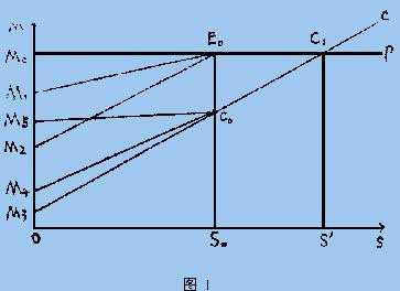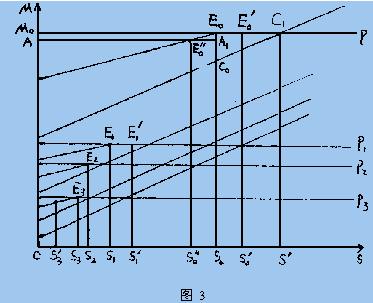 (1)图中P1表示大型零售企业或一级中心商业区的购买力,P2表示中型企业或二级商业区的购买力,P3表示小型零售企业或三级商业区的购买力。(注:P1P2P3三条购买力线的高低仅表示不同规模或不同商业区之间购买力的区别,并非指现实中的顺序一定如此,事实上不同城市、地区、时间,有不同的顺序;而且企业规模结构与布局结构之间也非一定是如此对应关系,此仅为简化分析。)与P1、P2、P3、分别对应的均衡点为E1、E2、E3,分别对应的均衡企业数量为S1、S2、S3。 这里以大型零售企业变动(其它条件不变)为例。图中,当S1向右移至S1时,大型零售企业数量增加;S0同时右移至S0,S0S0S1S1表示企业总量等量增加;随之,大型企业的均衡点E1沿P1向右移至E1,企业总量的均衡点E0也相应地沿向右移至E0。由于大型企业超量建设,引起大型企业成本增加,利润降低,并导致企业总量层次的总成本增加和利润降低。当S1左移时,在大型企业的购买力的层次上会出现购买力剩余,出现超额利润,并导致企业总量S0左移和企业总量层次上购买力剩余,使实现的销售收入低于潜在的购买力。其它结构层的变动情况也会如此。这样也应解释了,零售企业结构中某一局部层次企业数量的非均衡变动与企业总量非均衡变动之间的连带性,也解释了零售企业结构与整个零售商业经济增长之间的相关性。 (2)这里有一个至关重要的问题需要解释,那就是,例如当小型零售企业的数量S3向左移,而大型企业数量S1等距离向右移时,两者在总量层次上是否会抵销从而保持企业总量的均衡值不变? 当S3左移至S3时,小型企业在左侧偏离均衡,企业销售收入会低于该层次上的购买力,出现购买力剩余。小型企业层次上的如此变动反映在总体层次上表现为,企业总量由S0向左移至S0",均衡收入点E0移到收入点E0"(S0",A)。出现购买力剩余AM0。如果仅发现在总购买力出现剩余而不顾其具体的结构层次,盲目建设大商场,那么大型零售企业数量从S1向右移至S1,S1S1=S3S3,对应的销售收入从E1向右移至E1。但由于在均衡点E1以右,边际收入为零,故E1=E1。这一情况反映在总体层次上,企业总量S0"右移回S0,即达到总体均衡所需求的企业数量。但是,销售收入没有改变,S0A1=S0"E0",也并没有消除购买力剩余,A1E0=AM0。这时的状况是,购买力剩余与(大型)企业过剩并存,处于非均衡状态。由上分析可知,S3左移同时S1等量右移时,企业总量S0虽可不变,但此时的S0已不是原来均衡条件下的S0,而是处于非均衡状态下的S0。其根本原因在于购买力层次(消费结构)的差异,即各层次购买力线之间的平行性和各层次收入线之间的平行性使得购买力剩余难以在层次之间转移。 最后归纳出从结构角度考察的零售企业经济增长方式: 集约型增长方式:(1)某一结构层次上企业数量的增加能够减少相应层次上的购买力剩余,从而实现销售收入的增加,并导致总收入的增长。(2)某结构层次上企业数量减少能够减少相应结构层次上的成本,而不导致该层次乃至总体上销售收入的减少,从而增加利润,提高商业经济效益。 粗放型增长方式:(1)某一结构层次上不存在购买力剩余而增加企业数量,结果导致成本上升,并引起总体层次上收入和效益的下降。目前我国许多城市零售商业企业规模结构失衡的一个突出表现是大型企业严重超量。据有关资料,北京市目前已建和在建的“万米商厦”有近160座,其中不乏10万平米以上的“庞然大物”,总面积可达560万平方米。而要满足其销售能力,就需要集中北京市常住居民和300万流动人口的60%以上的购买力,而消费结构决定了这是不可能的,因此必然达不到理想的收入和利润。1995年北京市社会消费品零售总额与上年比,万平方米以上大商场的增长幅度如果除去148%的物价上涨率,实际为负增长。另据国家统计局资料,1996年第一季度全社会消费品零售总额比上年同时增长236%,但大型百货零售企业前四个月商品销售总额为2082亿元,零售总额为160亿元,仅比上年同期增长75%,扣除同期物价上涨因素,实为负增长。(2)某结构层次上企业数量偏少,虽然企业个体销售的收入和经济效益较高,但引发了购买力剩余,乃至其它社会经济问题,仍属于粗放型的经济增长方式。我国城市居民的恩格尔系数在50%左右,表明收入中一半用于食品支出,如果再加上日常生活品的消费,可达70%~80%。而这些支出多发生在居民区周围,因而购买力最集中的是居民区三级商业网点,而我国目前不少城市在零售商业布局结构上把大部分投资集中在市级中心商业区,却忽视了三级商业网点建设。不少国有小型日用百货店、粮油食品店、蔬菜副食店、土产日杂店物质技术设施落后,濒于瘫痪。许多地区个体商店主宰了三级商业区,虽然个体效益较高,但组织化程度、管理水平等较低,社会成本极高,不利于商业经济增长。(3)某一结构层次上企业数量的增加,不能减少另一结构层次上的购买力剩余,却导致购买力剩余企业过剩并存。改革开放以来,我国居民收入和消费水平大大提高了。但有些人(包括政府投资者和商界人士等)不顾其中的结构层次,片面认为大商场“树大招风”,企图通过大商场来吸纳各层次的购买力(剩余)。结果,大商场并未能全部吸收小型商店日用生活消费品的购买力剩余,导致大商场过剩与居民区小型商店建设不足并存的局面。因此,只有建立在结构对应合理的基础上,商业经济才会集约增长