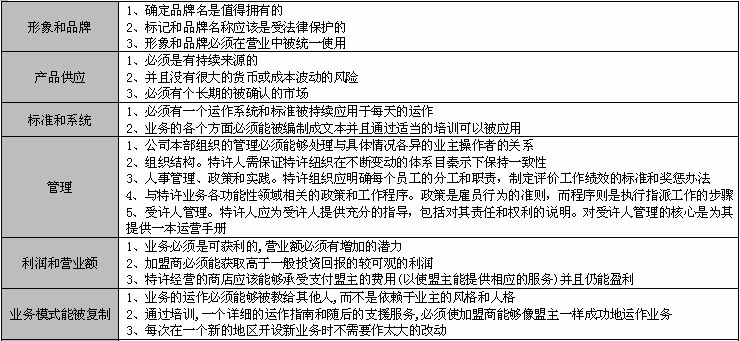 特许方对自身的优势、劣势应该有清醒的认识。国际特许经营协会有四个评估标准。