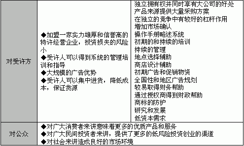 著名未来学家奈斯比特断言说:特许经营将成为21世纪的主导商业模式。然而他没有说清楚所有的潜台词,特许经营不仅仅扮演的是一种“新营销”角色,更是创建强势品牌和积累品牌资产的有力工具。品牌特许经营有类似于品牌延伸的提升作用,只不过品牌延伸着眼于内部积累,而品牌特许经营着眼于外部扩展。