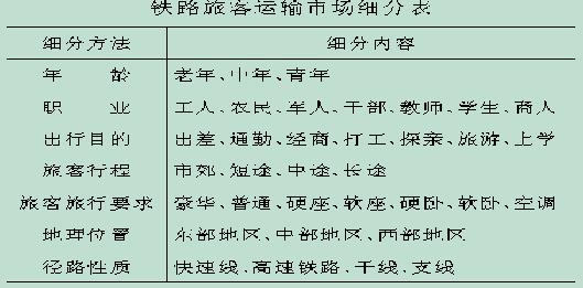在1997年铁路领导干部会上,铁道部领导就客货运如何加强营销提出了具体的措施。各级客运管理部门开始配置营销管理人员,铁路客运营销问题提到了议事日程上来,成为人们关心的新问题。下面就铁路客运营销问题作初步的探讨,抛砖引玉,意在引起人们对客运营销工作的关注。 长期以来,由于运能与运量的矛盾,客运市场是供不应求的卖方市场,形成铁路素有“铁老大”的称号,铁路客运企业的产品是“皇帝女儿不愁嫁”,客运企业经营管理的重点是放在生产上,铁路供给什么样的客运产品,旅客就要什么,完全是以产品为导向的。在这种以产品为中心的观念支配下,客运企业领导的主要任务是抓运输生产,基本上不考虑销售。随着市场经济的发展和完善,客运市场的竞争日趋激烈,原有的市场份额进行再分配。面对这种情况,客运企业开始意识到要想生存和发展,就必须把客运企业的工作重点放到满足旅客需求的市场上来,必须进行深入的市场调查研究,了解旅客的需求和愿望的变化情况,并积极采取措施,使客运企业能适应旅行消费需求的变化。市场营销观念逐渐地为人们所接受,并且成为客运企业从事经营管理活动的基本思维方法和指导思想。在1997年铁路领导干部会上,铁道部领导就客货运如何加强营销提出了具体的措施。各级客运管理部门开始配置营销管理人员,铁路客运营销问题提到了议事日程上来,成为人们关心的新问题。下面就铁路客运营销问题作初步的探讨,抛砖引玉,意在引起人们对客运营销工作的关注。 1 我国铁路客运营销工作现状分析 当前铁路客运在客运市场中所占份额下降,有市场变化的客观因素,但主要是铁路自身存在的问题所造成,诸如: (1)营销观念落后,营销意识淡薄。在运输市场已经形成的情况下,许多客运工作人员缺乏市场观念和竞争意识,没有危机感和紧迫感。 (2)营销队伍薄弱。现有的客运部门,基本上是管理生产型的。铁路客运工作的规章基本上是两种:一种是管铁路客运内部的;一种是管旅客的,就是没有管营销的。现有的客运组织系统与市场营销环节相脱节,有流不能增开客车,无流时不能及时调整客车编组,站车管理不能融为一体,一线客运工作人员没有营销责任。 (3)营销手段落后。全路大多数车站手工售票,售票布点少,广告宣传几乎是空白,管理机制难以适应市场要求。 (4)铁路客运票价外收费多,造成最终运价水平上升,促使旅客无奈去寻找可替代的交通方式。 (5)服务质量不高。车下买票难,车上不舒适,餐饮质次价高,客运服务人员素质低下,与民航等客运方式比较差距较大。 (6)激励措施不力。目前客运职工的收入与工作量联系不密切,既无压力又无动力。 近年来,铁路对客运营销工作已开始有所认识,但从理论上、方法上还缺乏准备,基本上还处于以生产者为中心的生产导向阶段。而且全路客运营销工作发展不平衡,经济发达地区好于不发达地区,南方好于北方,沿海好于内地,营销体系正在建立。 2 铁路客运市场细分 客运市场营销要解决的核心问题是客运企业如何制定市场营销战略,而正确地选择市场则是营销战略的首要内容,客运市场细分,又是客运企业在研究市场营销环境和旅客旅行消费行为基础上,选择和确定市场的重要手段。所谓客运市场细分,是以旅客需求为出发点,根据旅客出行行为的差异性,把旅客总体划分为类似旅行群体的过程。在客运市场上,旅客的需求是多元化的,进行市场细分,就是要先发现不同旅客之间需求的差别,把需求相似的旅行者群体归为一类,每一个旅客群体就是一个细分市场。进行细分的目的就在于发现不同旅客群体需求的异质性。如,不同的旅客对速度、安全、方便、价格、舒适度等方面有不同的要求,因而构成了异质客运市场。德国、瑞士和奥地利三国的联邦铁路为了挖掘欧洲客运市场的巨大发展潜力,他们针对度假和私人旅行的市场需求,成立了DACH旅店列车公司的下属合资公司,在欧洲开办夜间客运,开行城间夜间号列车。我国在新图中安排的“夕发朝至”列车、各种旅游列车也都是为某个细分市场的旅客群体服务的。 一个善于进行市场细分的客运企业,有利于分析挖掘新的市场机会,制定最佳销售战略,有利于企业调整销售策略,有利于根据细分市场的特点,集中使用企业的财力、物力,发挥自己的优势,以取得最佳的经济效益。从铁路客运企业来说,过去基本上是在“同质市场”的前提下,采取单一的策略,这种做法是以不变应万变的做法,已不能适应动态变化的客运市场。认真研究各个客运细分市场的特征,对铁路客运面向市场、选择改革的突破口,确定改革的步骤,具有重要的现实意义。旅客运输市场可按下列方法进行划分。 按旅客行程细分。对不同行程的旅客进行组合并加以考察,以便找出长途、中途、短途旅客在旅行过程中要求的异同点,铁路客运可分为管内、直通和市郊等细分市场。 按旅客对旅行条件的要求细分。不同消费层次的旅客对旅行条件具有不同的要求,可分为豪华车、空调、卧铺车、普通车等。铁路客运分为优质优价列车、旅游车、普通车的软硬座、软硬卧等细分市场。 按地理位置细分。由于不同地区经济发展水平存在梯度差,不同地区的旅客总体消费水平也存在较大差异。客运企业要根据不同地区的特点选择不同的市场营销对策,客运市场大致