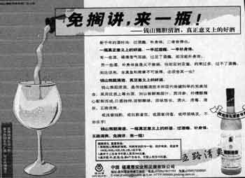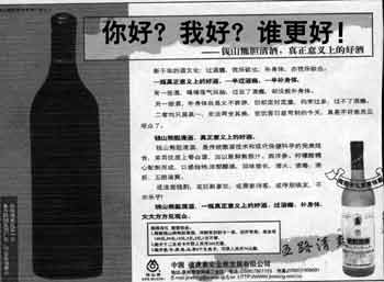在营销这块地盘混得久了,就常有人问:和大侠叶茂中交往过没有?我每次都是这样回答:一直没缘与他面晤,但三四年前在广告界混时,一不留神和那厮过了一招! 一、接招 那是三四年前,笔者在一家广告公司做文案。钱山熊胆酒的老板上门来了,要求我们提供策划服务。客户谈到:“叶茂中给我们做过策划,但销售不是很成功。当然这其中不仅仅是策划公司的问题,也有我们执行和系统配合的问题。我们希望先从报纸广告开始,磨合之后和你们进入全面合作。” 叶茂中的客户!他可是我们刚入行的广告人的仰慕的名星!客户走了之后,老大发话鼓励我们:“不要听说叶茂中都失败了,我们就胆战心惊了!他不就戴着棒球帽在北京混嘛!” 有老大鼓劲,我们便加足油门向前冲了。找出叶茂中的《转身看策划》,仔细分析他们的策划思路;把老叶拍的《熊说来一杯》广告片研究了一遍又一遍,慢慢悟出了一点道道。 二、过招 终于点着了叶茂中的穴道!老叶把钱山熊胆酒定位于“不伤肝的酒”,但用“不伤肝的酒”来定位能“清热解毒,养心护肝”的熊胆酒岂不是太缺乏力度?因为“不伤肝”和“护肝”这两个概念有根本的不同!这和“不会中毒的牛奶”“不会拉肚子的纯净水有什么区别! “黄金易得,熊胆难求”,用这样的卖点来刺激消费者当然注定要失败,可叹!可惜! 三、拆招 第一招:雾里看花--我们的广告说什么? 钱山熊胆清酒到底是什么?雾里看花,也应看得真真切切,清清楚楚,明明白白。 是清酒?名称上是清酒,但与日本清酒是完全不同的概念。 是白酒?主要成分是白酒,但因配以熊胆汁、柠檬汁,而具有了不同的口感、颜色,更重要的是赋予了保健功效。 是传统补酒?有补身体的作用,清火、清毒、清肝,但却因能养心护肝,而勿须如饮普通补酒般定时定量,人人均可借海量大喝特喝。 是果酒?有柠檬味,但却是不折不扣的粮食酒,而且也没有红酒所具有的浪漫高雅的内涵。 是啤酒?酒精度跟啤酒相近,却不具有啤酒的特点。25元—28元价位足以吓倒啤酒族,这以是在明目张胆地与中高档红酒、白酒叫板了。 钱山熊胆清酒就处在这般尴尬境地:什么都是,什么都不是,四面树敌,骑虎难下。 但,这也正是机遇之所在。 我们的出路在将其定位于一种有自己特色的新型酒,来创造一种消费氛围,引导消费潮流,跳出这进退两难的怪圈。 产品定位:钱山熊胆清酒,是一种既能过酒瘾,又能补身体的、能当普通酒喝的功能性补酒。 这个定位,既有效地将钱山熊胆清酒与其他酒区分开来,赋予其鲜明个性,而又切合了现代人越来越强烈的健康意识,消费者以很好的消费由头。 第二招:有的放矢--我们的广告向谁说? 根据钱山熊胆清酒的特点,可以归纳实际消费者和潜在消费者具有如下特点: 1、有一定的消费能力; 2、有一定的保健意识; 3、有理性的消费意识 4、倾向于喝低度酒; 5、有一定的品位 综合以上五点,符合这些特点的消费群体以中青年男女为主,他们常处于社交场合,应酬较多,消费具有代表性,对喜欢的品牌和产品较忠诚,但同时愿意学尝试新生事物。因此我们在创作过程中,应关注中青年人的生理、心理状态,有的放矢。这样同时避开了众军拼杀的老年补酒市场。但由于中青年人是消费的意见领袖,这部分群体依然会被牢牢抓住。 第三招:攻心为上--我们的广告该怎么说 怎样才能打动消费者? 幽默!让人会心一笑的,必定是能打动人心的; 简单!最简单的,往往是最能深入人心的 排他!只有排他性,才能产生震撼力。 正是基于以上三个原则,我们进行了系列文案创作; (一)报纸文案 1、《上看,下看,各一半》篇(见图1)和《左派,右派,中间派》篇(见图2),侧重于将产品与普通酒及传统补酒相比较,突出产品特点,并将“过酒瘾”与“补身体”两个特点用上下部分,左右部分来体现,直观明了,给人留下深刻印象。而同时“上看下看”是流行歌词,“左派右派”是政治术语,有趣味,有意味。更重要的是,“各一半”、“中间派”高度形象地概括了产品的特点,使其从其他产品中脱颖而出。 2、《你好,我好,谁更好》篇(见图3)则是将钱山熊胆清酒与其他酒作一次全面比较,以拟人手法,借其他的酒的转身面对,“不好意思见观众”,突出了产品优势,耐人寻味。 3、《免搁讲,来一瓶》(见图4)则是正面推出钱山熊胆清酒,以一句闽南方言但人们又都能懂的标题,对前面系列文案进行总结和升华,有地方特色,同时掷地有声,极具号召力。 四、悟招 平面设计师用最快的设计好,AE用最快的速度提交给客户。三天后,客户的电话铃响了,传来客户总经理的声音:“我们营销会议刚开完了。所有的人一眼都看中了你们创作的广告!” 项目小组全体成员唱起了任贤齐的“左看,左看,真是不简单……” 现在回想起来,这四篇文案并无特别精彩之处,但由于准确把握了文化内涵,从而满足了客户需求。因为现代社会的竞争,是深层次的、全方位的竞争,产品已经由单一的质量上的竞争上升到了文化上的竞争,产品也许很快换代,但文化却是永恒的,并能够不断向内延伸和向外拓展。 “广告不分精彩不精彩,只分合适不合适”,广告只有适合了产品,才能真正起到促进销售的作用,只有这样的广告,才能是成功的广告。