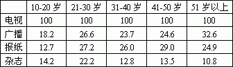 表1.1.4不同年龄受众对传媒接触比重分布