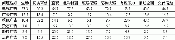 从上表数据中不难看出, 受众对不同广告形式特点的取舍上具有以下几个主要特点: