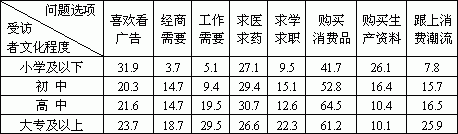 (二)受众文化程度越高,对广告作用的认识越高,表现出强烈的信息意识