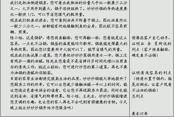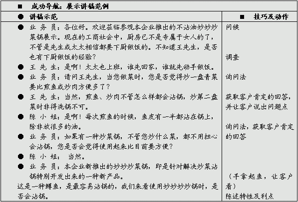 标准的展示话语是以一般的客户为对象撰写的展示讲稿,详细地配合产品操作的动作,以逻辑地方式陈述产品的特性及利点。