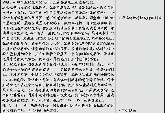 ●运用了特性-优点-特殊利益的说明方式有: