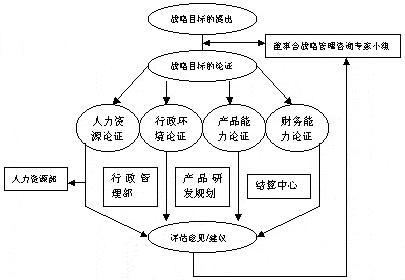 就企业管理职能分工上说,这一点并无大错。但问题往往是这样的:一个企业发展战略的拟定过程需要来自方方面面的资讯点,而且还要经过大量的分析、论证甚至辩论。这一过程的本身就牵扯到企业内外的诸多方面和人员。试想一下,如果一个企业98%的入认为研拟战略/策略是企业最高层(不到企业人员总数2%的人)的事情,这种条件下的战略/策略会是一种什么状况?又何以体现战略规划是一个企业发展变数的辨析过程,同时又是全体企业人员思维方式整合的过程?这样的战略又何以保证达成企业内部的共识并有效执行呢?一个企业的战略/策略规划缩小到一个具体个人,就是每个人的生涯计划。如果先法做到这一点,所调的战略/策略规划只能是一本厚厚的文件,完成规划方案的同时,就意味着此项工作的结束。在这里,我们介绍一家美国制药公司的5年战略发展规划工作流程图: