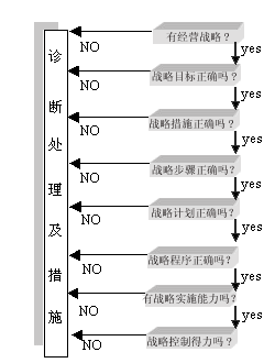 企业战略诊断,就是对企业长期发展的总体规划和战略决策所进行的诊断。它包括对企业战略目标、战略措施、战略步骤、战略环境等的评价与判断。其诊断程序如右图所示。
