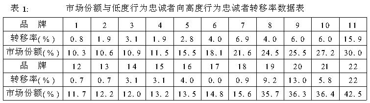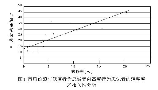 我们通常把品牌看作资产,但实际上真正的资产是品牌忠诚。如果没有忠诚于品牌的消费者,品牌不过是一个仅用于识别的符号而已。但是,品牌忠诚度的分析模型、衡量尺度、品牌忠诚度与营销策略的对应关系等深层次的理论问题没有得到很好的研究和探索.本文试图从行为、情感两个角度入手,构造一种品牌忠诚度行为-情感模型,并以此作为基点来阐述品牌忠诚度的深刻内涵。 利用这一结果,我们可以对这两个因素进行相关性分析,求出两者之间的相关系数①。我们还可以用最小二乘法进一步求出两者之间的回归模型,并且作出相应的回归直线。分析结果:相关系数为r=0.84;回归模型为Y=1.56X+12.2。 根据回归模型作出的回归直线如图1所示: r=0.84,说明市场份额与低度行为忠诚者向高度行为忠诚者的转移率是高度相关②的。 基于以上对行为忠诚度的分析,我们可以得出以下结论:①高度行为忠诚者对于品牌的实际销售量、市场占有率至关重要。能否维持高度行为忠诚者的忠诚度不变,直接关系到品牌的发展和壮大。②品牌市场份额的扩大与低度行为忠诚者向高度行为忠诚者的转移率密不可分。企业应通过各种途径和手段提高低度行为忠诚者的忠诚度,使他们最终成为高度行为忠诚者,从而扩大品牌市场份额。 三、情感忠诚度分析 以上高、中、低度忠诚者都是针对行为忠诚度而言的,如果把情感忠诚度也考虑进去,那么结果就会不同。如前所述,情感忠诚度只是从消费者对品牌的态度这一角度去考察的,它并不一定最终导致购买行为的实现。因此,从某种意义上说,对于情感忠诚度的量化分析只是一种预测。 然而,情感忠诚度在评价、决定消费者的实际品牌忠诚度(即从行为、情感两方面综合考虑的忠诚度),以及为企业分析品牌市场份额与消费者品牌忠诚度关系提供决策参考等方面,能起到相当重要的作用。 美国一家专门为企业进行营销策划的咨询公司——NPD公司,通过对某一品牌400多名忠诚者的调查,得出了如图2所示的情感忠诚度调查结果。 图2中的每一个柱形表示,在有关类型的品牌忠诚者中有多少比例在第一年转变为高情感-高行为忠诚者。 例如,3%的低情感-低行为忠诚者在第二年转变为高情感-高行为忠诚者,而18%的高情感-低行为忠诚者在第二年转变为高情感-高行为忠诚者。 比较18%与3%这两个数据,可以发现,在同样的低行为忠诚度下,高情感忠诚者远比低情感忠诚者更容易转变为高情感-高行为忠诚者。我们把“高情感-高行为忠诚者”又称为“真正品牌忠诚者”。 同样,高情感-中行为忠诚者、高情感-高行为忠诚者远比低情感-中行为忠诚者、低情感-高行为忠诚者更容易成为或保持为真正品牌忠诚者。 由此可得,情感忠诚度是衡量消费者品牌忠诚度不可或缺的参数。只有把它与行为忠诚度结合起来,才能全面、准确地考察和分析消费者的品牌忠诚度。 四、品牌忠诚度分析模型 运用情感忠诚度与行为忠诚度组成的两维坐标,结合对情感忠诚度、行为忠诚度进行的分类、量化,我们可以得出如下的品牌忠诚度分析模型。 这一分析模型建立在情感忠诚度和行为忠诚度形成的矩阵的基础上,并将两者按前述概念分别划分为低、中、高三类忠诚度,从而形成了9个区域(详见图3)。 我们把情感忠诚度高于行为忠诚度的忠诚者定义为“潜在忠诚者”。这类忠诚者对品牌的忠诚主要来自内在良好的情感、态度,因而更具有持久性,并且容易向真正品牌忠诚者转变。相反,情感忠诚度低于行为忠诚度的忠诚者,由于他们对品牌的忠诚更多地来自外在因素的影响,所以他们的品牌忠诚度就会不太稳定,比较容易成为中、低度忠诚者,甚至彻底转变为其他品牌的真正品牌忠诚者。我们把这类忠诚者定义为“脆弱忠诚者”。 显然,对于大多数品牌而言,如果其潜在忠诚者远多于脆弱忠诚者,说明该品牌已经建立起鲜明、独特的品牌个性,并且获得了多数消费者在情感方面的认同(即使消费者尚未购买)。因而,这种品牌必定具有良好的市场发展前景和抗竞争冲击能力。如果潜在忠诚者远少于脆弱忠诚者,说明品牌的使用者并没有对该品牌产生认同感,即使该品牌目前风光一时,占有较高的市场份额,其市场地位其实是非常脆弱的,这会对品牌今后的竞争、壮大产生严重的不利影响。这也可能就是我国众多国有品牌在洋品牌的冲击下纷纷落马的原因之一。 另外,我们可以发现,模型的右下区域表示真正品牌忠诚者。这是品牌忠诚度分析模型中最重要的部分。一个健康的品牌必须拥有较高比例的真正品牌忠诚者。 这类忠诚者倾向于对这一品牌持久忠诚。这种忠诚既包括情感上的认同感,又包括购买行为的持久性,因此,此类忠诚者会长久关心、持续购买这一品牌。他们不仅对该品牌已产生的情感经久不衰,而且该品牌业已成为他们生活中必不可少的一部分。即使是面对更好的产品、更低的价格也是始终不逾。可见,真正品牌忠诚者才是企业所梦寐以求的“上帝”。维持他们的忠诚度,品牌必然能保持甚至不断提高市场份额,成为市场上的“常青树”。 但是,健康品牌不仅要维持真正品牌忠诚者,而且要尽力挖掘潜在忠诚者,使更多的潜在忠诚者发展成为真正品牌忠诚者。只有如此,才能使品牌不断壮大。实际上,品牌壮大的真正内涵就是从情感、行为两方面综合考虑,有更多