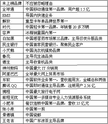 世界品牌实验室公榜“中国500最具价值品牌”颇受瞩目,作者认为该榜制造了中国十大泡沫品牌,而且与《商业周刊》世界榜评相比,前10名品牌价值有不同程度高估或低估。作者评论引发了关注,本文进一步指出新榜评价值取向有误,并列出20个不应被忽略品牌为例,提醒企业警惕打造品牌的四大误区。 与《商业周刊》全球品牌榜评相比,其上榜品牌一直以产品品牌为重,除非企业与产品是合一情况,则企业品牌即是产品品牌。如英特尔即代表芯片,IBM代表集成电脑服务,这些企业品牌同样是产品品牌,同样是商业竞争的单位。国内企业应该清醒看待世界品牌实验室的新榜,不可陷入打造企业品牌的误区,而应着力去打造全球通、解放、时代这些产品品牌,这才是应对大竞争时期的商业成功之道。 误区二:忽视后发国家单点突破品牌的巨大成长力量 新榜最后一名是丹芭碧,品牌价值5亿元,民生银行2003年净利润14亿元,品牌却未能上榜。而就在2003年,全球竞争力组织对国内上市公司作出评价,民生银行位列前三名。象民生银行、小天鹅、鲁花、 德生等品牌,诚然不是银行、家电、食用油、电子产品行业的巨头,但它们分别是各自细分领域的领先者,单点突破而有极强竞争力,未能上榜难获公允。举例而言,鲁花在食用油行业不如金龙鱼、福临门,但它在花生油领域占居主导地位,市场份额达60 %以上,如若顾客要买花生油,则鲁花是三者中首选,。 从专业上来说,新榜评忽视了单点突破品牌的力量。犹太教传承故事记述,“石头掉在花瓶上,花瓶碎了;花瓶掉在石头上,花瓶碎。”这是犹太哲人在告诫子孙,一定要在竞争中创造出石头对花瓶的优势,以赢得局面主动。聚集于单点突破,能创造出专业强势,这是后发品牌的优势与打造途径。微软专注软件,品牌价值反超IBM,诺基亚聚集于手机,数年内超越西门子、飞利浦,均为前鉴。 中国作为后发国家,已没有成为通用电气、三菱这样大品牌的机会,事实上也没有必要这样。格兰仕微波炉的成功,为中国企业提供了很好的范式:集中战力主攻一个局部,进而取得主导权。就象中集把焦点集中于集装箱领域取得全球第一,万向集中在汽车的一个零部件上取得绝对优势,正泰在低压电器上走向全球,远大更是把焦点放在中央空调中的一种直燃型空调上取得全球领先……这种类型的企业,比国内那些看起来销售额几百亿的大公司要更优秀、更卓越,因为它们是全球竞争中的石头。不妨设想,仅以家电业为例,假设长虹是彩电的世界第一,小天鹅主导全球洗衣机市场,容声主导全球冰箱市场,格力主导全球空调市场,格兰仕继续领航全球微波炉业。如果能实施这样的一个战略前景,其威力将会是超乎想象。 实际上在各行各业中,中国已经诞生出了相当多的“大王”级品牌,如“打火机大王”、“纽扣大王”、“指甲钳大王”、“刀具大王”等等,这些品牌所蕴含的巨大力量与价值岂容忽视?德生作为“收音机大王”,鲁花拓展“花生油大王”,容声走向“冰箱大王”,张小泉构筑“刀具大王”,这些品牌都相当有前途,揭示了中国品牌后发成功之道,万万不容忽略。 误区三:忽视高科技品牌的十倍速趋势潜能 榜评最不应该的是漠视了中国众多的高科技品牌,而这些品牌相对来说与国外同类品牌有着较接近的起点线,是中国经济赶超先进国家的生力军团。这些品牌目前也许并不强大,但前景远大,发展迅猛,而品牌价值正是指向这种未来预期的。英特尔前董事长安德鲁•••格鲁夫有一句名言“未来变化是十倍速的”,尤其在高科技领域更是如此。微软现在的市值是3000多亿美元,去年利润99.93亿美元,谁能想象得到20年前微软的营业额才1亿美元? 高科技品牌成长及其品牌增值速度不再象传统行业那样以几十年为单位,互联网的兴起,加速了这一行程。如UT斯达康只用了短短几年时间,其市值就高达200多亿元,比苦心经营20年的联想还高,更不用说与其它传统产业相比了。神州数码是中国最大IT分销商,阿里巴巴是全球最大网上贸易市场,东软营收超过上榜的用友、金蝶总和两倍,腾讯QQ即时通讯注册用户达2.86亿,携程在全球人口最多国家成为最大旅行电子网,前程无忧主导着知识经济下的人力资源市场,盛大网络引导着激增的网络游戏,百度是全球第一的华人搜索引擎……这些品牌都代表着鲜明、有效的商业模型,倍受资本市场青睐,任何一个品牌价值都远在丹芭碧之上,是中国未来经济的中坚。这一系列品牌在新榜中居然不见踪影,实为不当。 如果说中国的闭关自封,错过了工业发展的最佳时机,步入信息时代,中国企业再也不能忽略高科技品牌的打造,此乃与先进国家较为相同起跑线的较量。 误区四:忽视国家心智资源对品牌的支持价值 我们在《中国品牌竞争力分析报名》曾呼吁,应利用国家或区域心智资源来打造品牌,这是中国品牌的三大出路之一。检视《商业周刊》全球榜评,可见美国电脑及飞机行业品牌、日本汽车及电子产品品牌、德国高级汽车品牌、意大利服装品牌、瑞士手表品牌,均受到重视。这是因为,这些国家在不同领域被认为有专长,形成心智资源优势,其品牌因此彰现价值。然而新榜对中国品牌的评估,显然忽略了此一方面。 中国一向在美食、丝绸、茶叶、瓷器、手工器具等方面有心智资源优势,这些领域的品牌有极大价值,并具备走向世界的良
