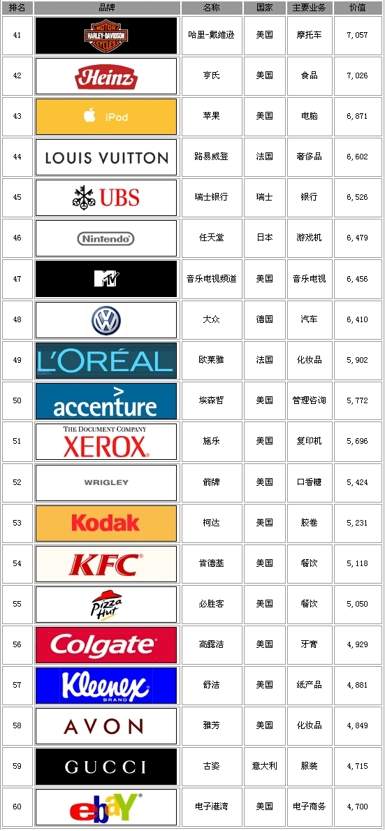 | 2004《商业周刊》全球100顶级品牌榜(41-60名) | |||||