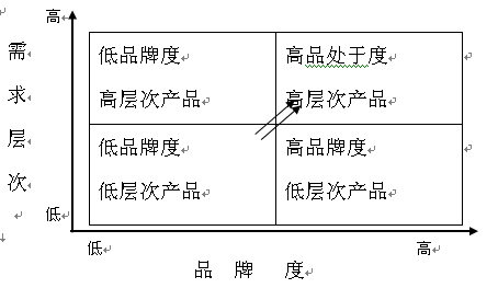 在做进一步说明前,我们首先按照马斯洛需求层次和产品的品牌度画一个图如下: