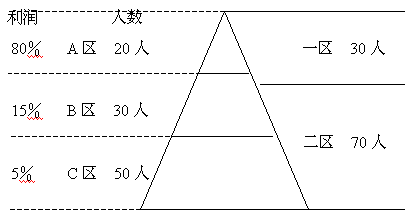 1.对象群: 所有的广告、行销活动都是针对目标对象群而开展的,直效行销针对的是区隔出的更加明确的目标对象群。 2.区隔市场 直效行销,市场区隔是关键。在界定了目标对象群与非目标对象群以后,直效行销所面对的是如何对目标对象群做市场区隔。传统的做法是以人口统计、生活形态、消费心理、期望利润等为目标进行划分的,而直效行销所做的市场区隔,应是以“利润度”为标准的,因为现实情况是这样的,有一群相当少的消费者,常常左右了每一类商品大多数的销售和利润。企业常常以追求市场占有率来巩固自己的市场地位,而直效行销所做的则是如何追求并巩固“高利润消费者的占有率”。 20/80的原则指的是一般情况下,某种品牌或产品的购买情况是20%的购买者创造80%的消费量,在其它因素不变的情况下,也同时产生80%的利润。 我们可以以利润度为标准按20/80的原则对目标消费人群(100人)做下列假设区隔: