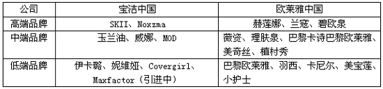 尽管宝洁公司比欧莱雅提前9年来到中国市场,但是欧莱雅凭借收购小护士、虎口闪电抢购羽西,率先完成行业布局:欧莱雅在华目前一共拥有14个品牌,呈金字塔状分布。 在国内日用消费品领域,宝洁是当之无愧的巨无霸,在生产、研发、渠道、网络、品牌定位、宣传运作、人才管理培训等方面,早已完成布局整合,在市场上纵横捭阖,无人可挡。但是在化妆品领域,“品牌教父”因错失羽西,国内彩妆及大众护肤品市场还是空白,但是罗斐宏曾表示:今年在中国引入Covergirl和Maxfactor两大品牌,改变这一现状。转机只有寄希望于3月1日新上任的女总裁了。
