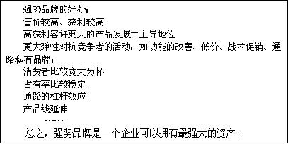 品牌是消费者对产品的全方位体验。 它包含如下特征:“ 个性、可靠、信誉、信任 、朋友、地位、乐趣、服务、资讯、共享的经验”;作为品牌管理者,他们大都有一个共同的理想——让自己的品牌成为强势品牌!