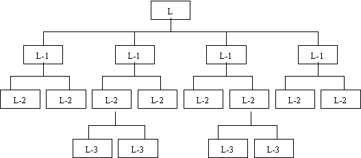 在这里处在某一层级上的职位价值被看作是相同的,但这显然不符合实际。譬如在一个技术型的企业里,技术经理职位要比其他经理职位的价值高。相应地,技术经理的薪酬也应更高一些。在经过评估以后,等级关系可能如下图: