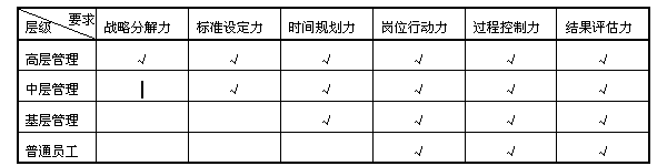 企业员工执行力构成要素 由表可以直观地看到越是高层所需要的技能越全面,因此企业高层的执行技能比一般中层的执行技能和普通员工的执行技能更重要,很多人想当然地认为企业执行力不强是下属没有按照上级的意志去落实其实是一种误区。直接把任务简单地抛给员工,当然不会得到有效地执行,如果管理人员把某个任务的完成标准、时间都明确了,在下属执行的过程中进行检查和协助,而下属还是完不成任务的话,只能说把任务没有交代给真正有能力去完成这件事的人或者说他应该找更合适的人来做了,所以执行的效果关键还是看我们的管理人员是不是有计划(时间规划、完成标准)、有组织(找合适的人干活)、有领导(协助、激励)还有控制。 企业执行力整体上也是体现在企业执行并实现企业既定战略目标的能力。 企业行为是组织行为,要形成企业执行力必须理解组织行为的一些特点,组织的成员具备很强的执行力并 意味着整个组织具备强有力的执行力,也就是说企业执行力不等于企业成员个人执行力的累加,它可以小于或远远大于个人执行力的累加,之所以这样,是因为组织行为还包含了其他诸如信息传递、协调分工等特征。企业执行力主要由三个方面因素合成:流程、技能、意愿,流程是指企业运作流程,包括管理流程和业务流程,技能主要是企业成员的职业执行技能,就是上面提到的个人执行力的构成技能,意愿是指企业员工工作的主动性和热情。怎么理解呢?高效的企业运作流程就好像一条先进的生产线,执行技能强的员工就是生产线上熟练的技工,意愿就是员工的主动性和工作热情。光有先进的生产线没有熟练的技工没法发挥生产线的最大效能,再熟练的技工让他们手工操作赶不上流水线大机器生产,同样的生产线,同样熟练程度的技工,如果一边是热情高涨,一边消极怠工,当然是士气高者胜。所以说流程、技能和意愿就构成了影响生产产能的关键因素,就是企业的执行力铁三角,各边边长越大,三角形面积越大,企业的执行力就越强;相反,如果我们把这个三角形的任意一边朝内移动,三角形的一边长变短,面积也变小,其他两边即使很长也产生不了效用,整体执行力也就下降. 如何全面提升企业执行力?有了对企业执行力的构成剖析,就能对症下药。既然企业执行力是以流程、技能与意愿为主要成分的合力,那么全面提升企业执行力相应地主要从三个方面着手。 首先要优化企业管理流程和业务流程,优化的前提是对现有流程的梳理整顿,做到标准化,因为标准化是高效组织的行为重要特征。企业的管理流程和业务流程是现代企业规范化管理的产物,流程的标准化和优化的基础工作是企业发展战略设置、组织结构设计、职能分解、岗位设置、岗位描述等,只有基础工作完善后设置的运作流程才是通畅的、高效的。有效的运作流程应该包括了岗位责任、权限配置、信息传递通道、业务流程、决策机制等,实际上是规范化的内部运作机制。同时流程标准化为企业ERP系统的实施奠定基础,IT管理系统的导入实际上都是对流程的一次优化和重组。 其次是提升企业员工的整体执行技能。要提升企业员工的整体执行技能水平 ,一方面在招聘过程中要挑选具备较强执行技能的员工,另一方面在企业内部进行持续的职业化训练,主要是通过执行技能培训和对职业技能运用的考核来实现。职业化训练不仅包括执行技能训练,还包括很多其他职业技能的训练,比如沟通技能、领导艺术、决策技能等,重要的是在做培训和考核计划的时候一定要知道每个培训项目和考核指标的指向,执行技能培训的目标就是提升员工的执行力。 最后就是提升企业员工的工作意愿。从根本上说就是要提高员工对企业的满意度,调动他们的积极性。提高员工对企业的满意度要从满足员工的需求开始,人的需求是有等级的,是动态的,不同的人在不同的时间他的核心需求是不同,但是在企业里面员工的满意度可以从文化氛围、成长空间、收入水平、福利环境、法律环境等几个方面去测量,我们要做的工作实际上也是三点:具有竞争力的薪酬体系和激励机制,良好的职业发展通道,以人为本的企业文化氛围 。 以上三点又可以放在一个更大的管理体系里面,那就是建立以人力资源为核心的规范化企业管理体系,对于有一定发展规模的企业来说建立规范化企业管理体系就一个提升企业运作效率的工程,就是提升企业执行力的过程,或者反过来说,做好了上面三个方面的工作,基本上就建立了以人力资源为核心的规范化企业管理体系。是不是建立了规范的企 管理体系企业的企业的执行力问题就完全解决了呢?当然不是。企业是不断发展的,不同阶段、不同规模的企业所建立的管理体系也存在规模和复杂程度的不同,也就是说管理体系本身也是动态的、不断发展的,需要企业领导、决策人员、管理人员不断地审视自己的管理体系是否与企业发展规模相匹配,构成企业执行力的主要因素之间又是否相互匹配,不断地调整企业管理思路并建立相应的模式,这个过程实际上就是不断“提高企业运作效率”的过程,这是许许多多理论专家、实践专家很久以前就提出来了概念,只不过现在被管理专家重新包装成所谓的“打造或构建企业执行力” ,让大家觉得耳目一新而已。目前企业的管理人员保持不断学习的心态,学